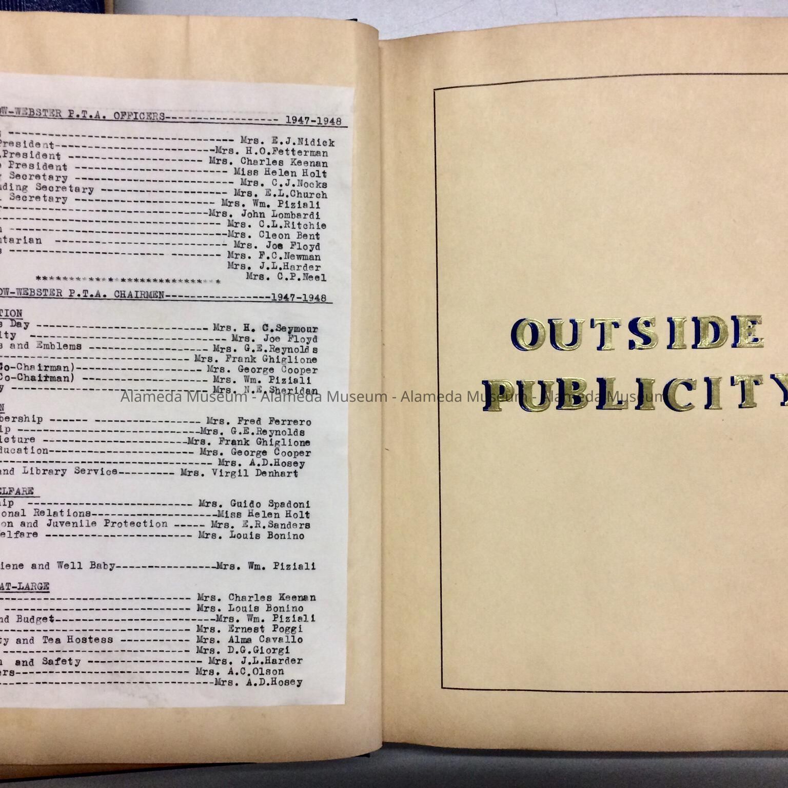 Publicity Record binder of the Longfellow - Webster PTA for 1947-1948.