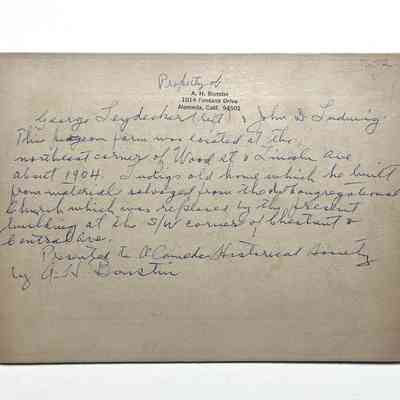 THIS PIGEON FARM WAS LOCATED AT THE NORTHEAST CORNER OF WOOD STREET AND LINCOLN AVENUE, ABOUT 1904. LUDWIGS OLD HOME WHICH HE BUILT FROM MATERIALS SALVAGED FROM THE OLD CONGREGATIONAL CHURCH, WHICH WAS REPLACED BY THE PRESENT BUILDING AT THE SOUTHWEST CORNER OF CHESTNUT & CENTRAL AVENUE.