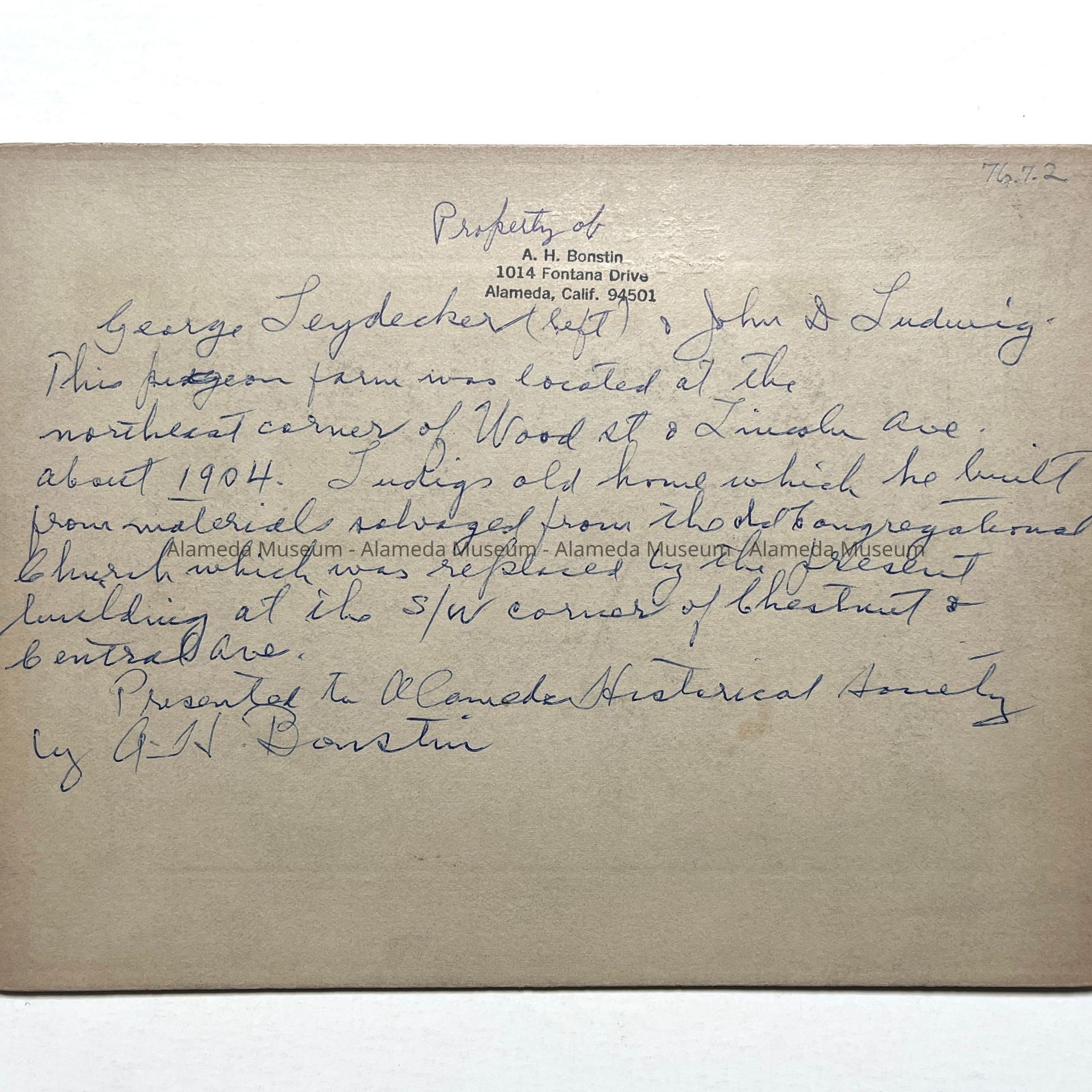 ACQUIRED FROM: A. H. BONSTIN