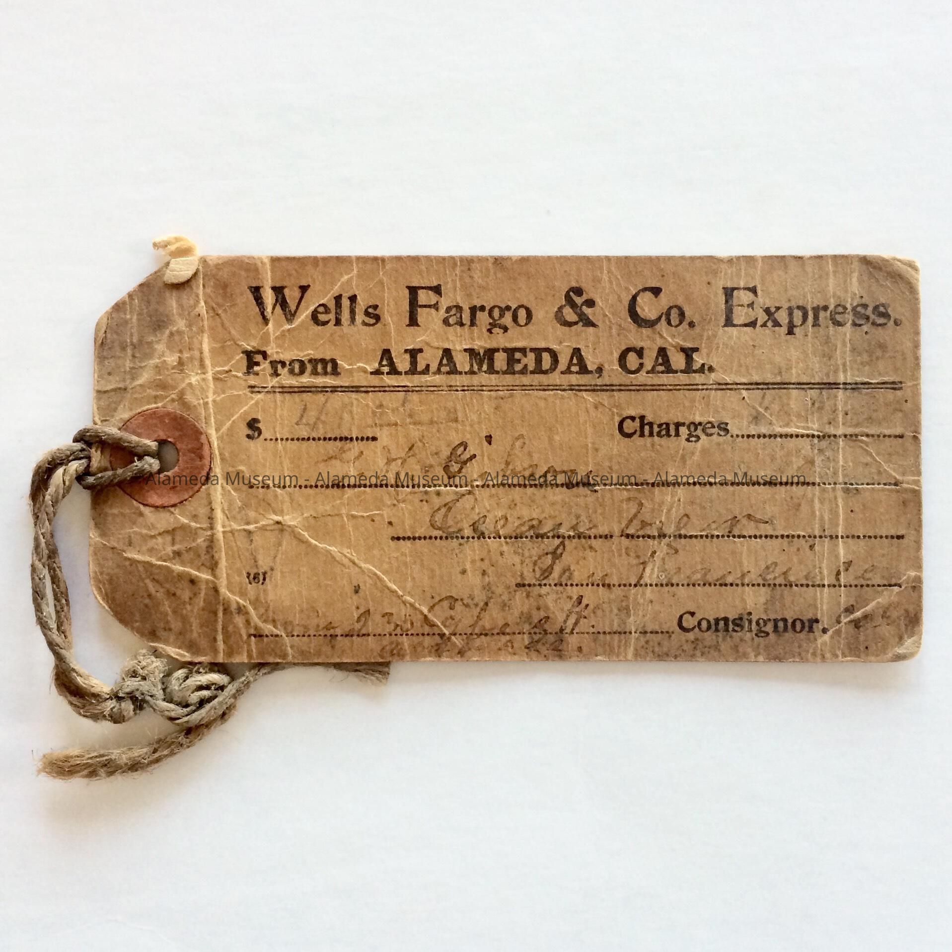History: Tag for attaching to luggage, etc. issued by Wells Fargo and Company Express, Alameda, CA. The tag is addressed to G.H. Gibson, Oceanview, San Francisco, CA and the consigner is at 230 Cypress St.