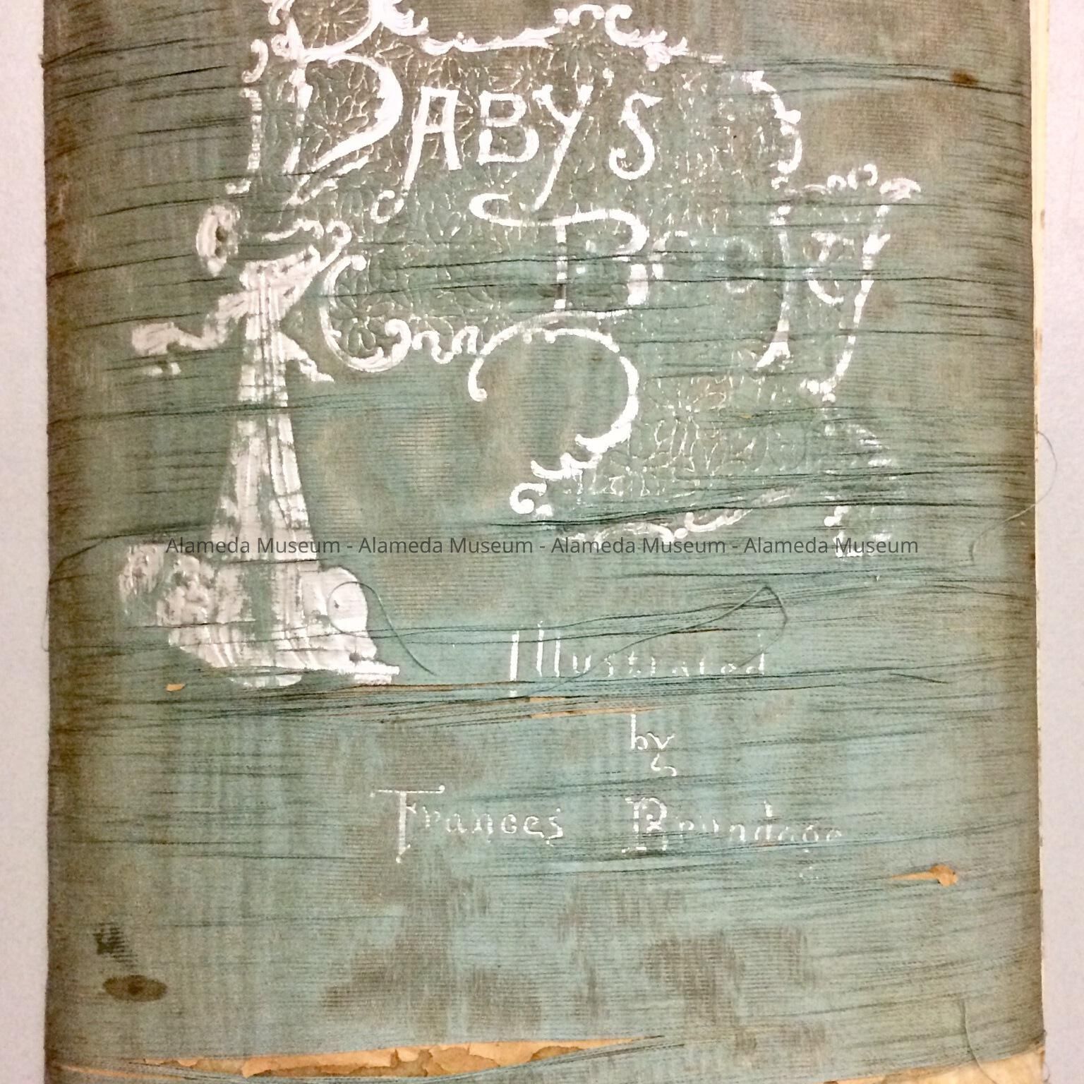 A HARD-BOUND BOOK COVERED IN PALE BLUE-COLORED MOIRE SILK. COVER HAS CAPTION, "BABY'S BOOK," AUTHORED BY IDA SCOTT TAYLOR AND ILLUSTRATED BY FRANCES BRUNDAGE. RAPHAEL TUCK & SONS, LONDON, PRINTER.
