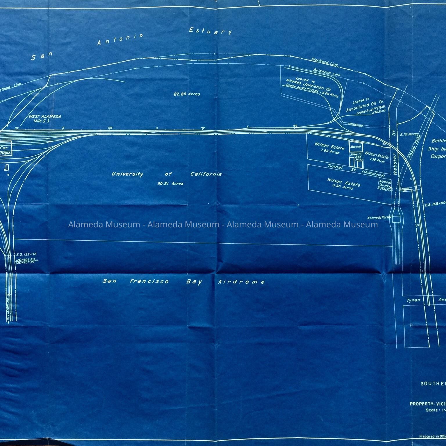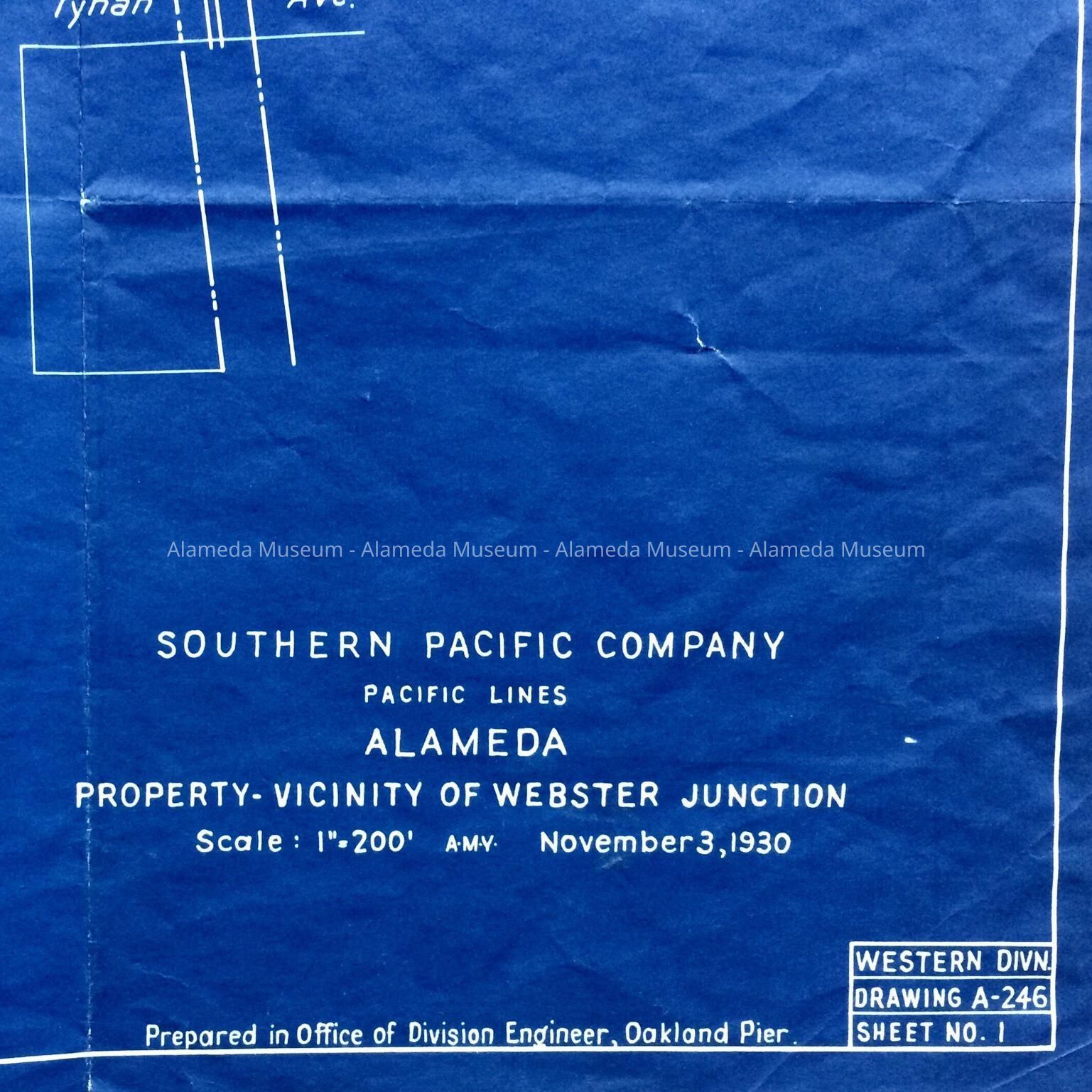 MAP DEFINING ROUTE OF SOUTHERN PACIFIC COMPANY LINES IN THE VICINITY OF WEBSTER STREET, DATED NOVEMBER 3, 1930. SOME OF THE PROPERTY INDICATED IS NOW THE SITE OF THE COLLEGE OF ALAMEDA, ALAMEDA, CALIFORNIA.