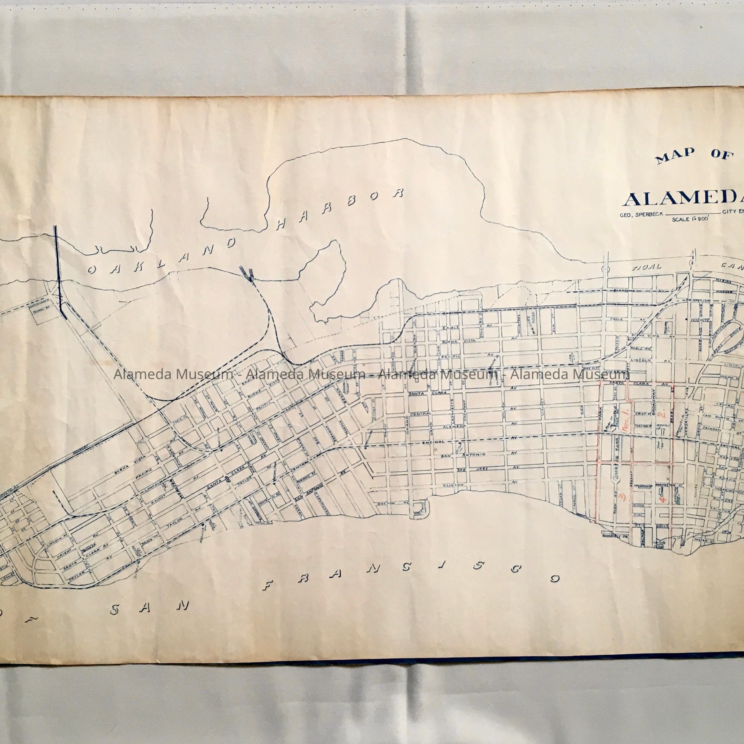 HISTORY OF OBJECT: MAP OF THE CITY OF ALAMEDA, ISSUED DURING THE OFFICE OF GEORGE SPERBECK, CITY ENGINEER.