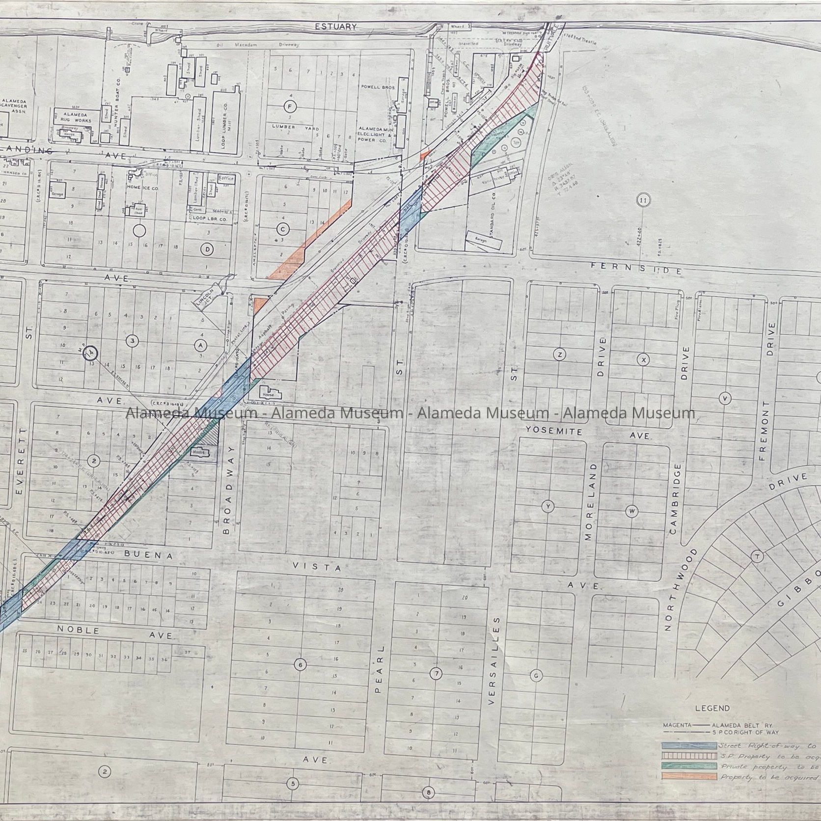 Map of areas near Southern Pacific Railroad tracks, c. 1931.