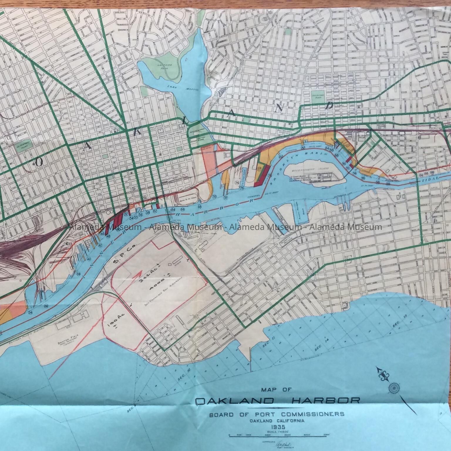 PRINTED MAP IN COLOR, WITH BOLD CAPTION, "MAP OF OAKLAND HARBOR."