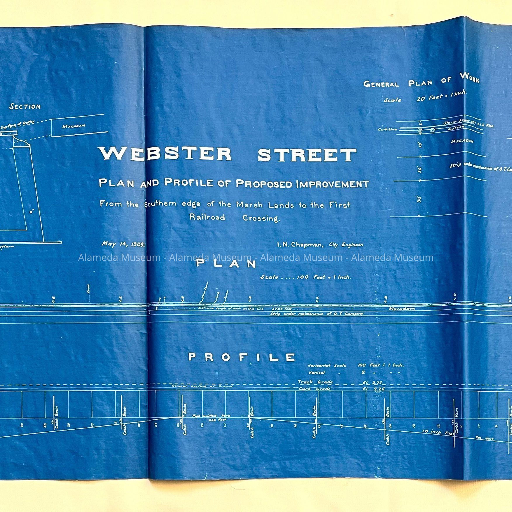 HISTORY OF OBJECT: A MAP DEPICTING PROPOSED IMPROVEMENTS TO WEBSTER STREET, DATED 1909.