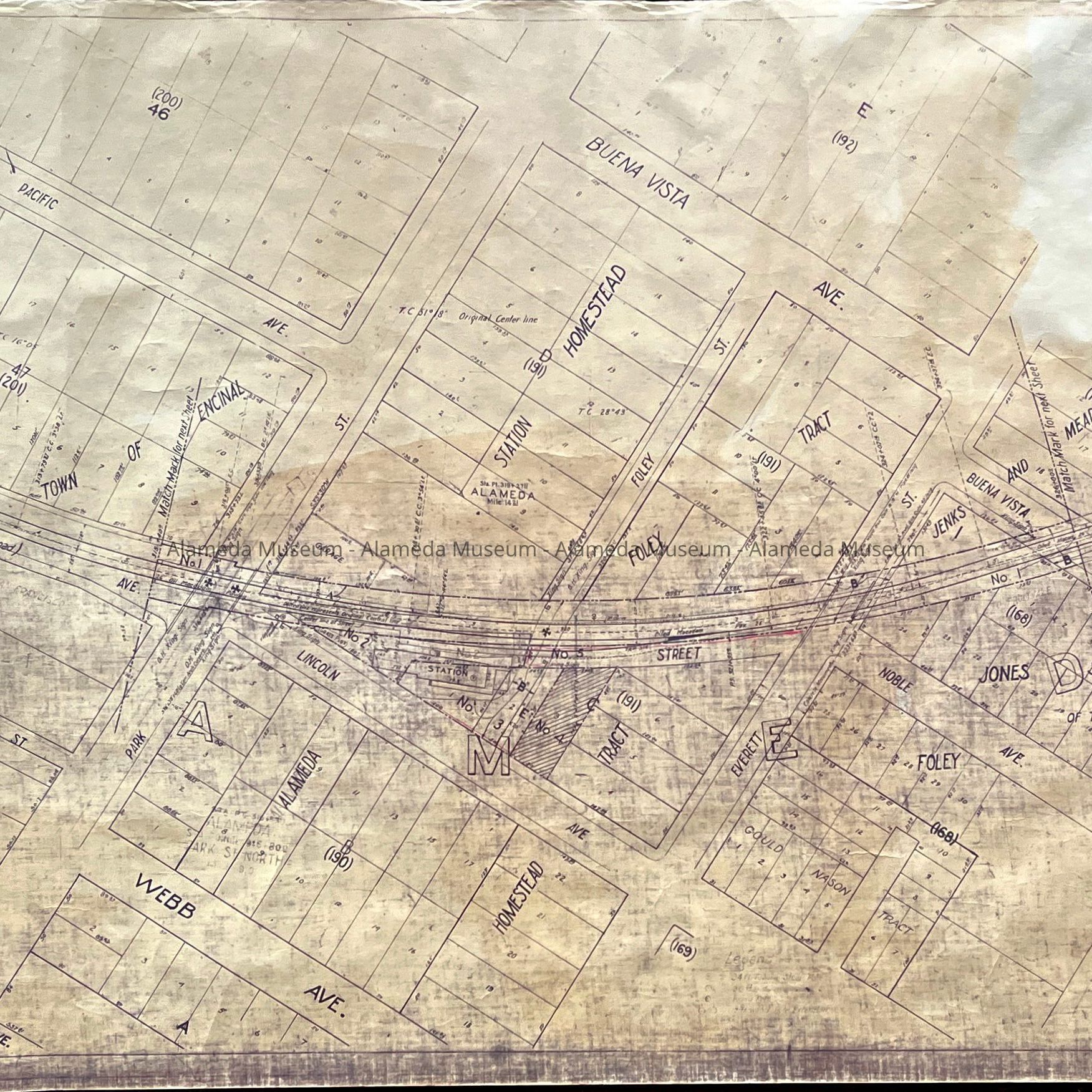 Map of Right of Way on Lincoln Ave, between Oak and Buena Vista, c. 1920