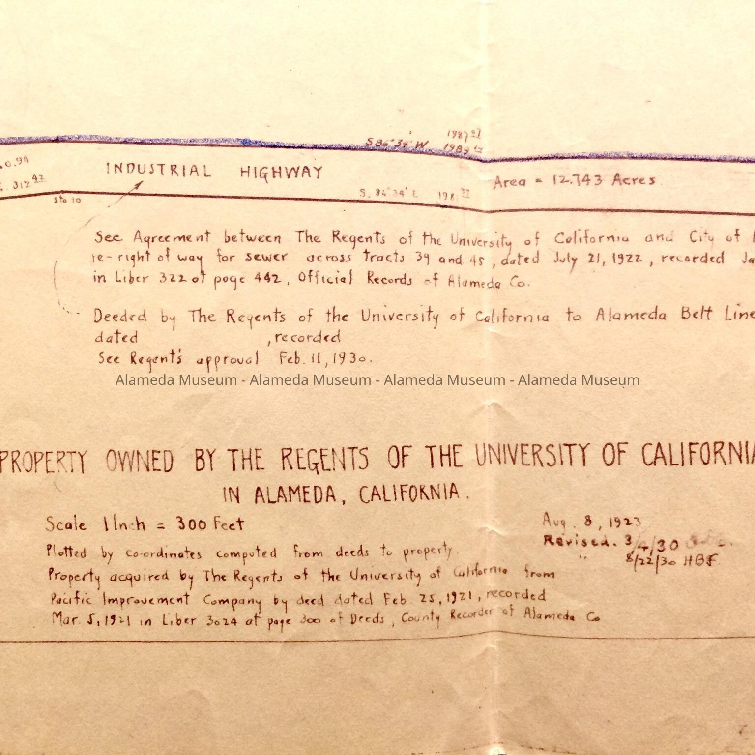 DESCRIPTION: A MAP WITH BOLD-PRINTED CAPTION, "PROPERTY OWNED BY THE REGENTS OF THE UNIVERSITY OF CALIFORNIA, ALAMEDA, CALIFORNIA."