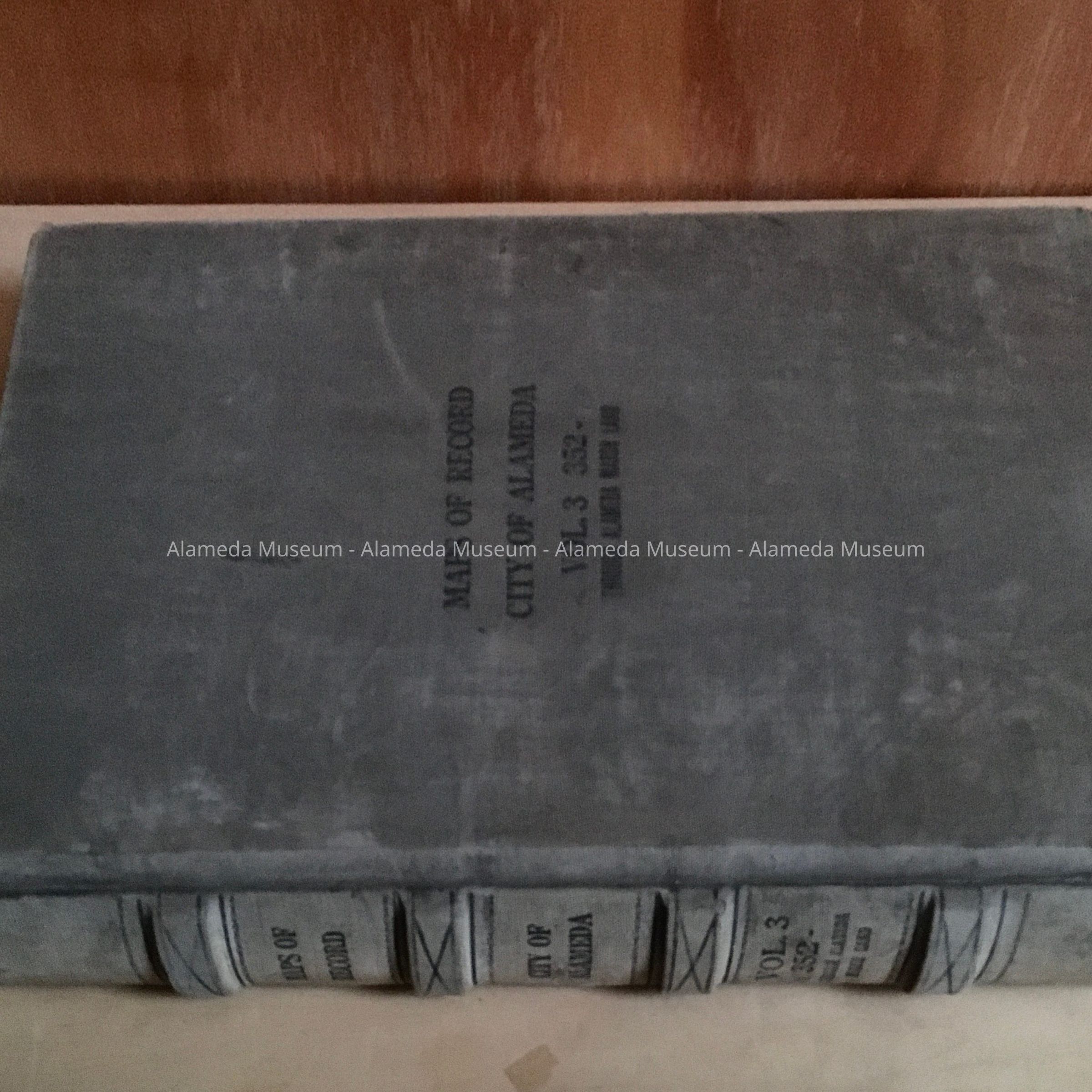 Description: Hardbound volume, gray binding. On the spine of book "Maps of Record. Vol. 3 352 through Alameda Marshlands".