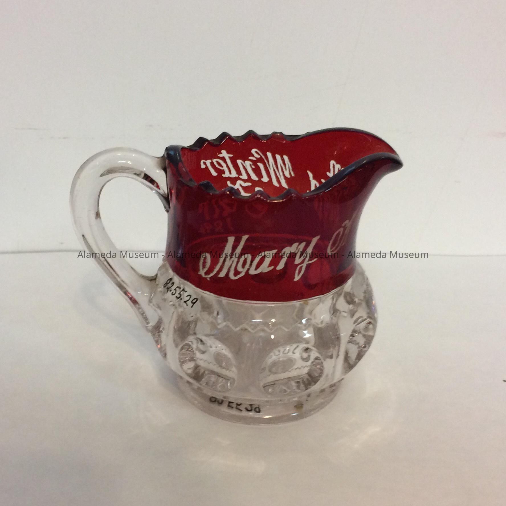 Mary Anderson's S.F. Mid Winter Fair Souvenir Glass Cream Pitcher, 1894Entry/Object ID