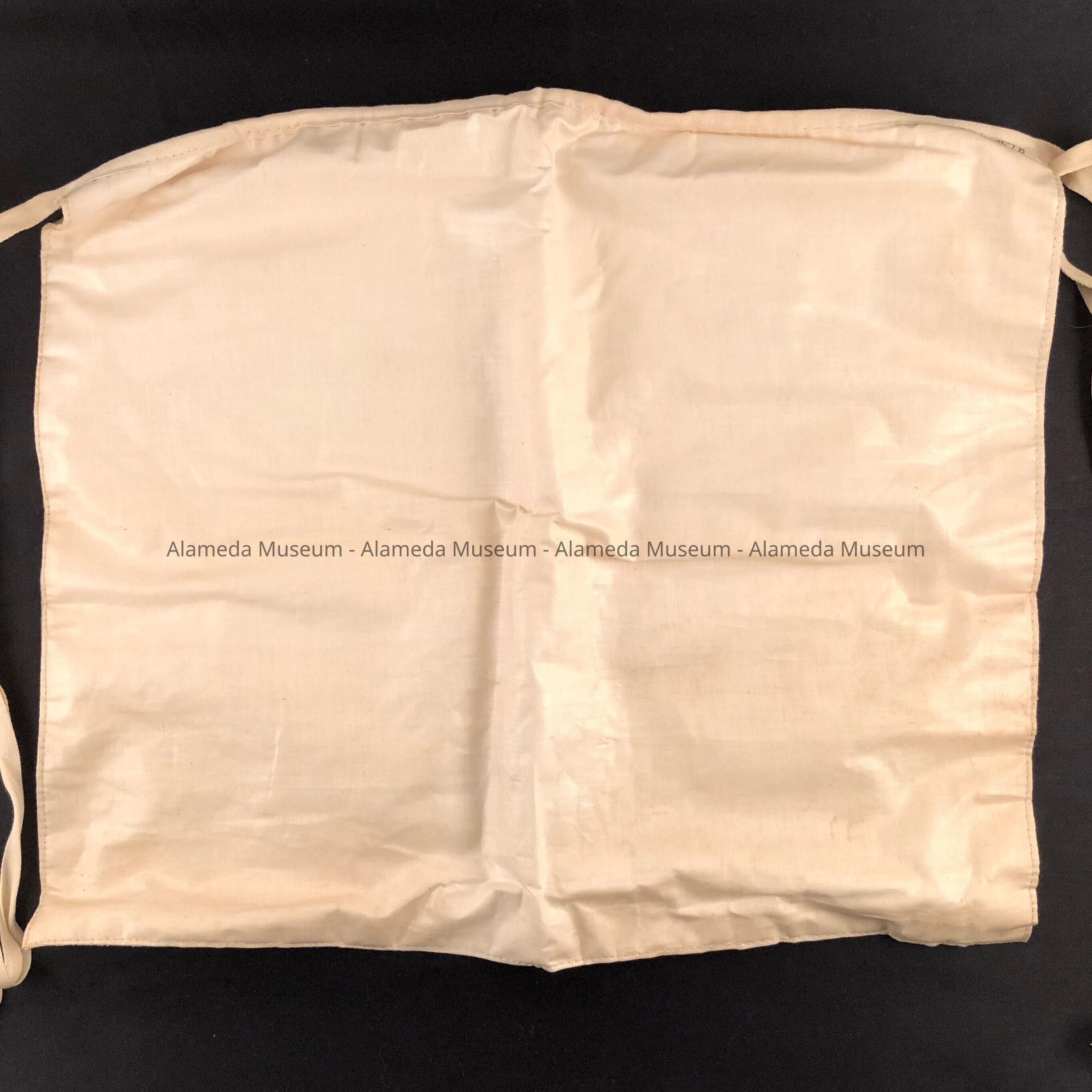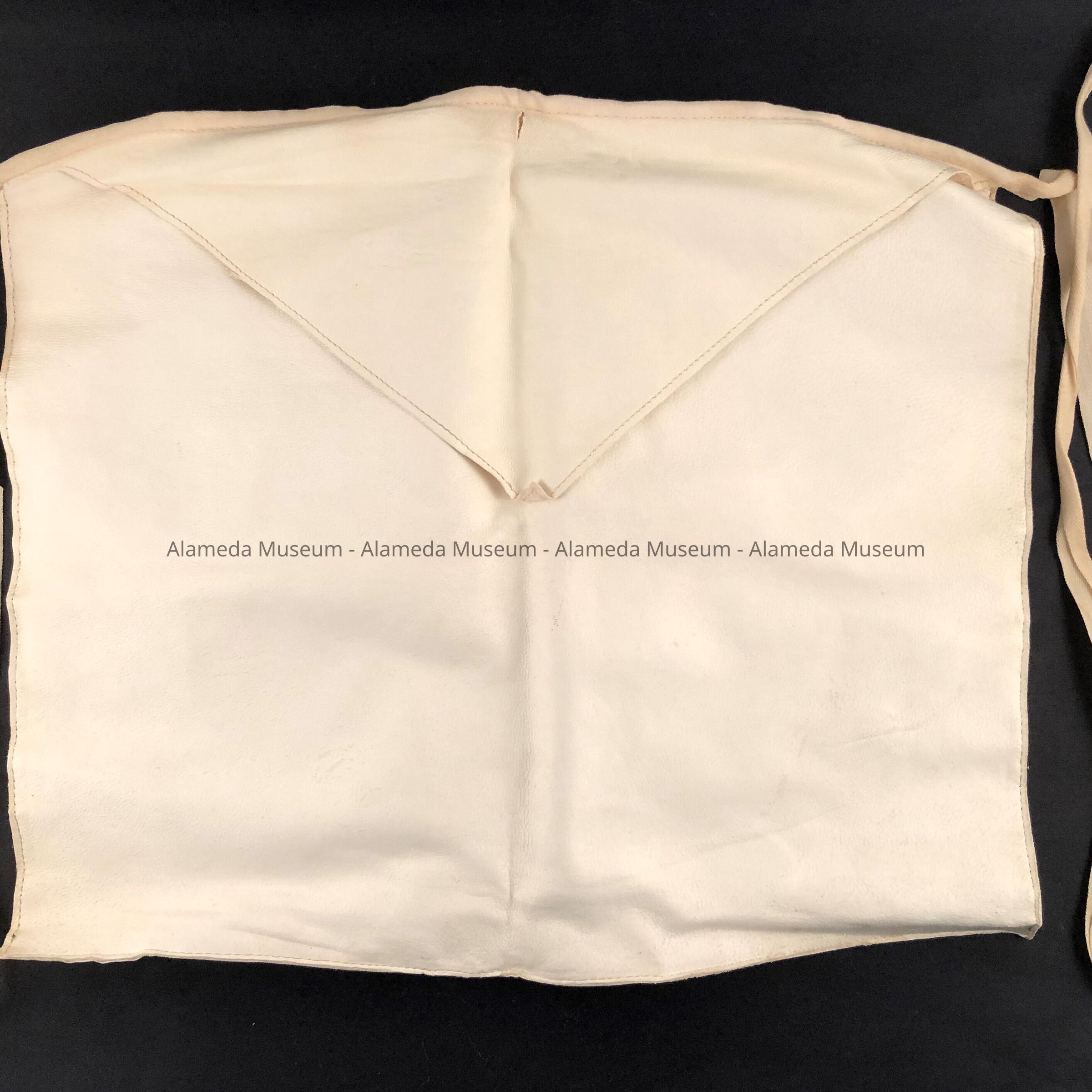 Masonic apron of white kid lined on the reverse side with polished cotton (white). White cotton waist ties.
