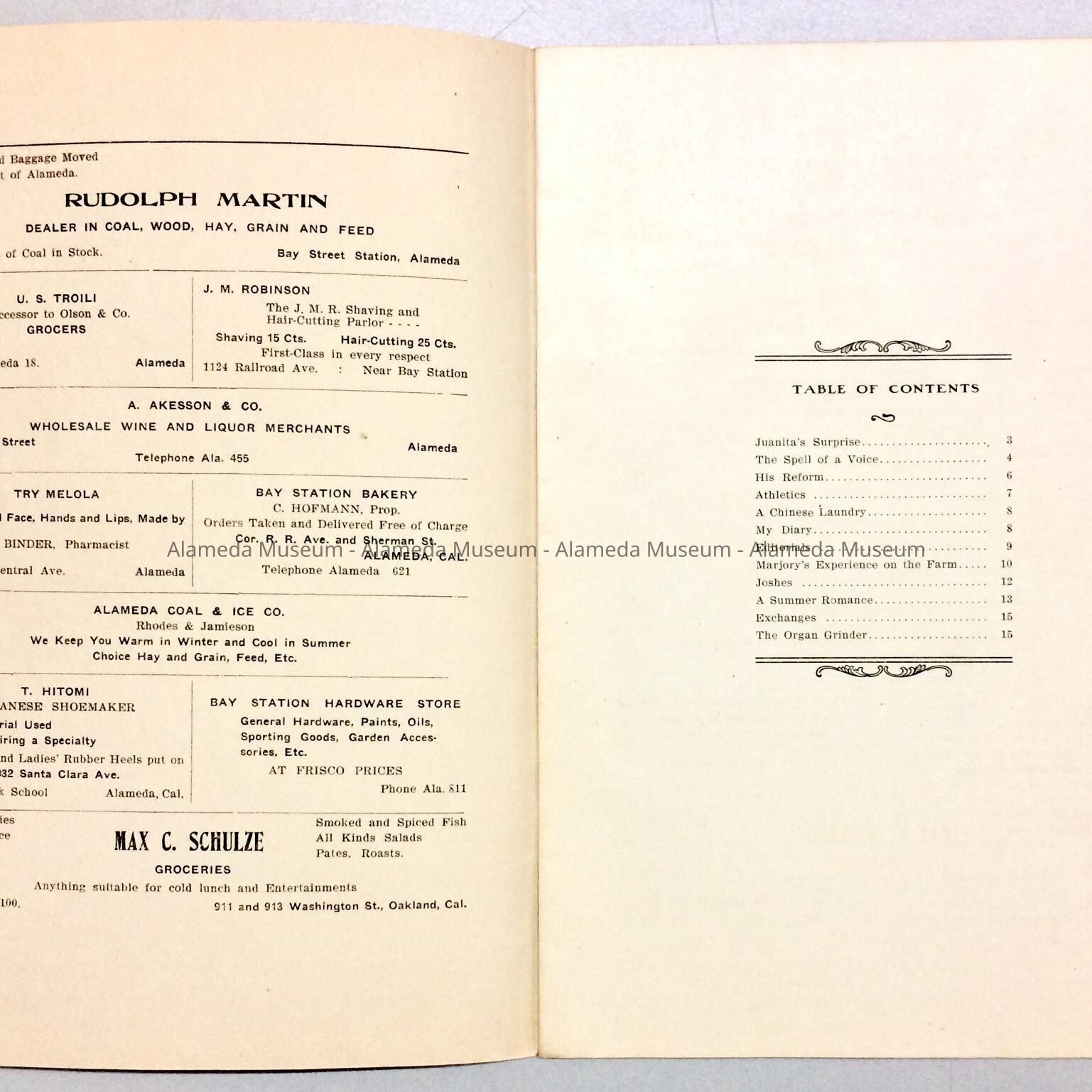 Booklet "The Arrow," published monthly by the Mastick Grammar School, Alameda, for April, 1905. Contents; school events, articles by student body members, etc.