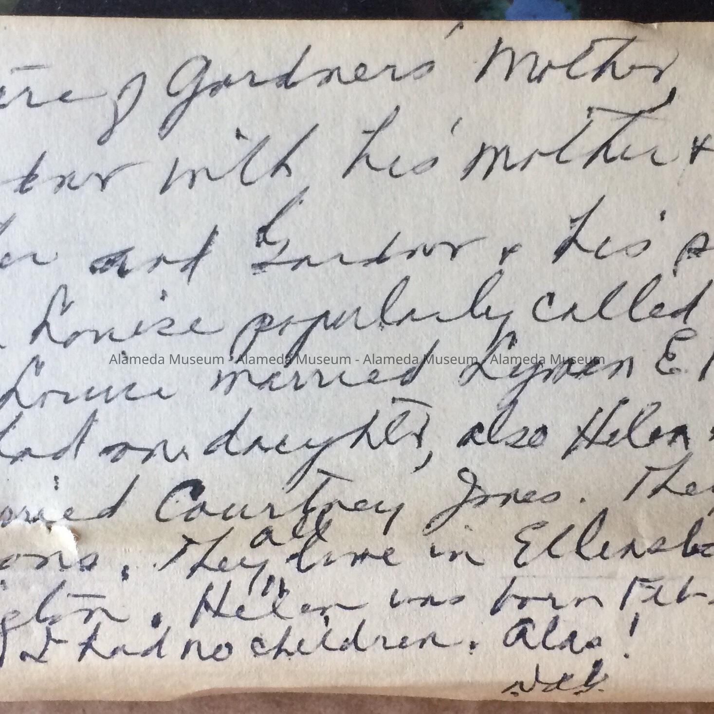 Center: Luther B. & Helen Louise Goldthwaite, and their son Gardner Cobb (born Alameda-May 19, 1894). Left: Helen Louise Goldthwaite (as a young woman). Right: Gardner Cobb & his sister Helen Louise Goldthwaite (born Alameda-Aug 1, 1900). Family resided at 871 Laurel Street.