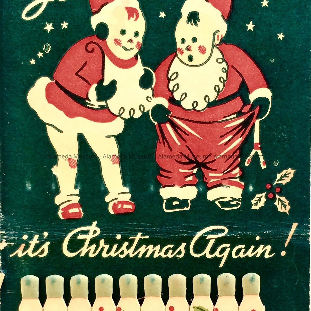 BOOK MATCHES CONTAINED IN HEAVY STOCK PAPER COVERLET, WITH CHRISTMAS DESIGN ON EXTERIOR AND INTERIOR, INCLUDING MATCHES.