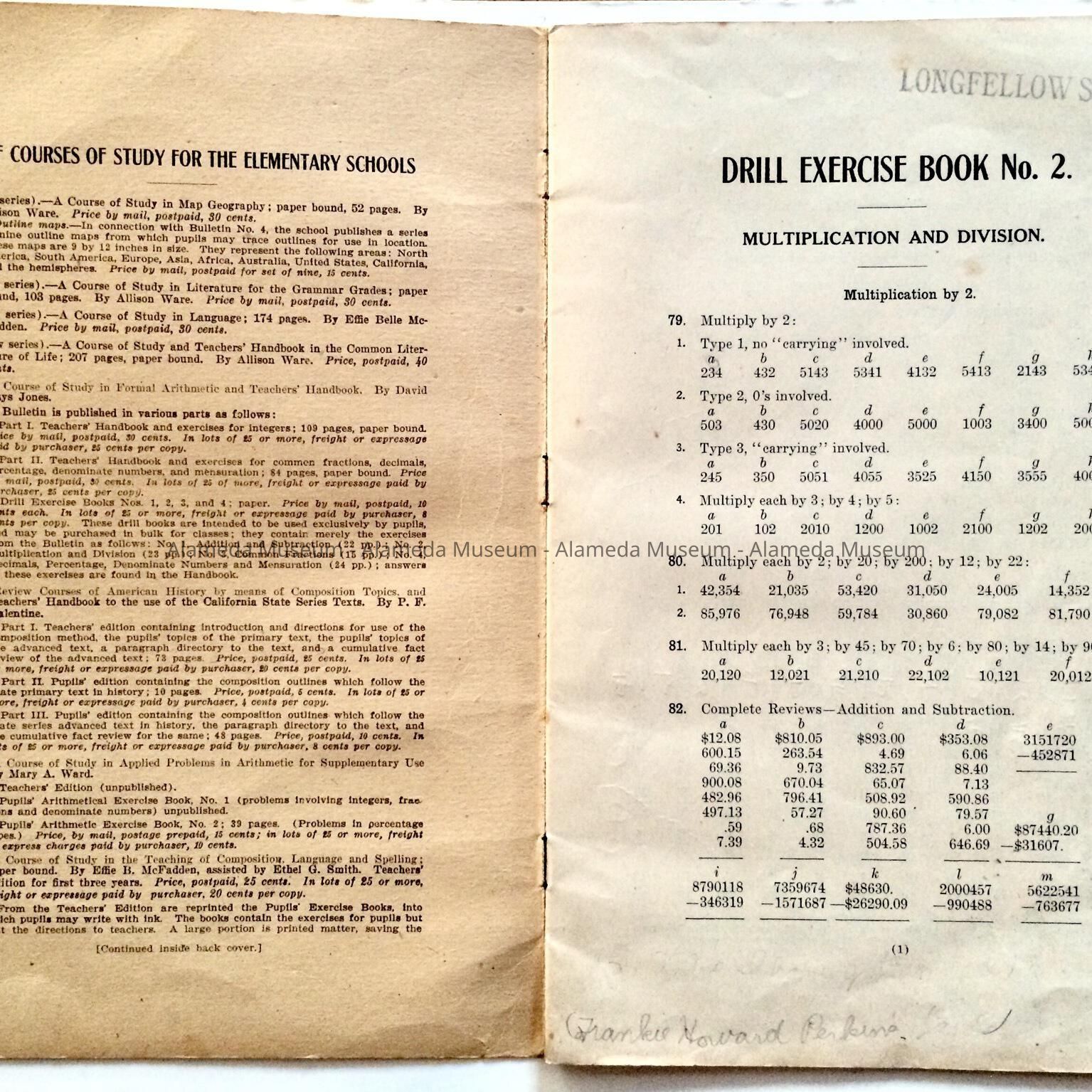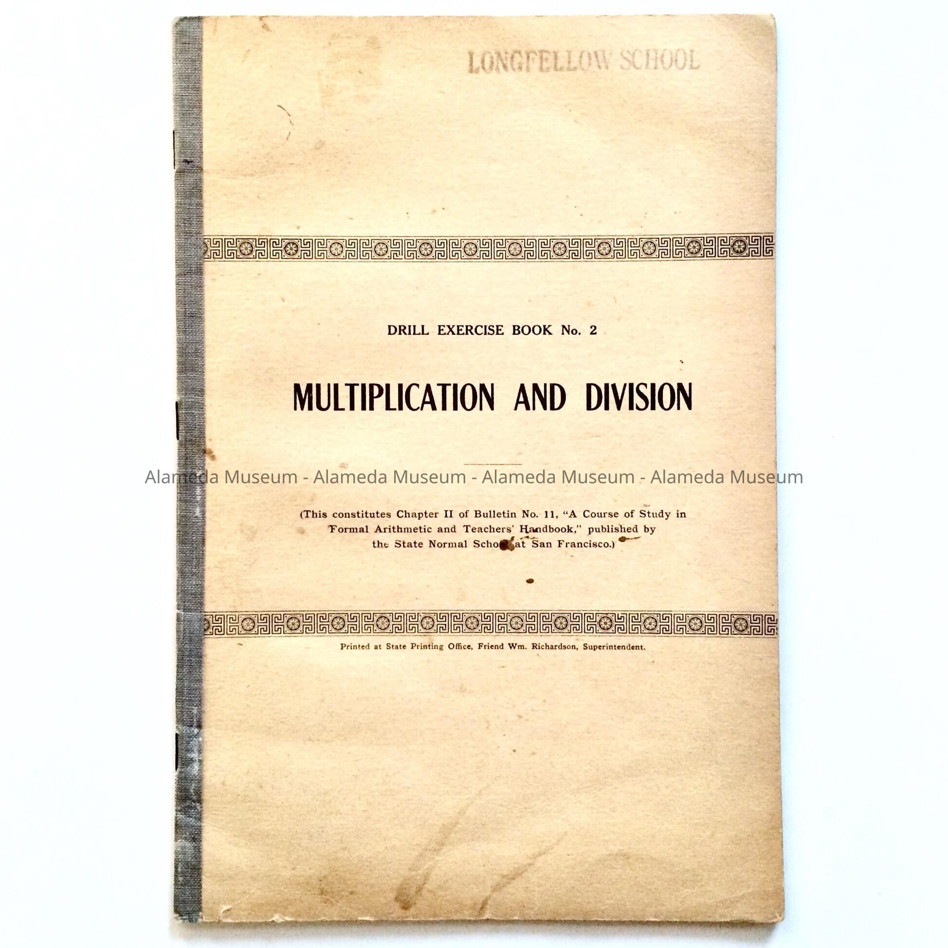 MATHEMATICS DRILL BOOKLET NO. 2 --- CONTAINING EXERCISES IN MATH AND DIVISION --- USED IN LONGFELLOW SCHOOL BY THE DONOR. THE TEXT WAS PART OF THE MATH CURRICULUM.
