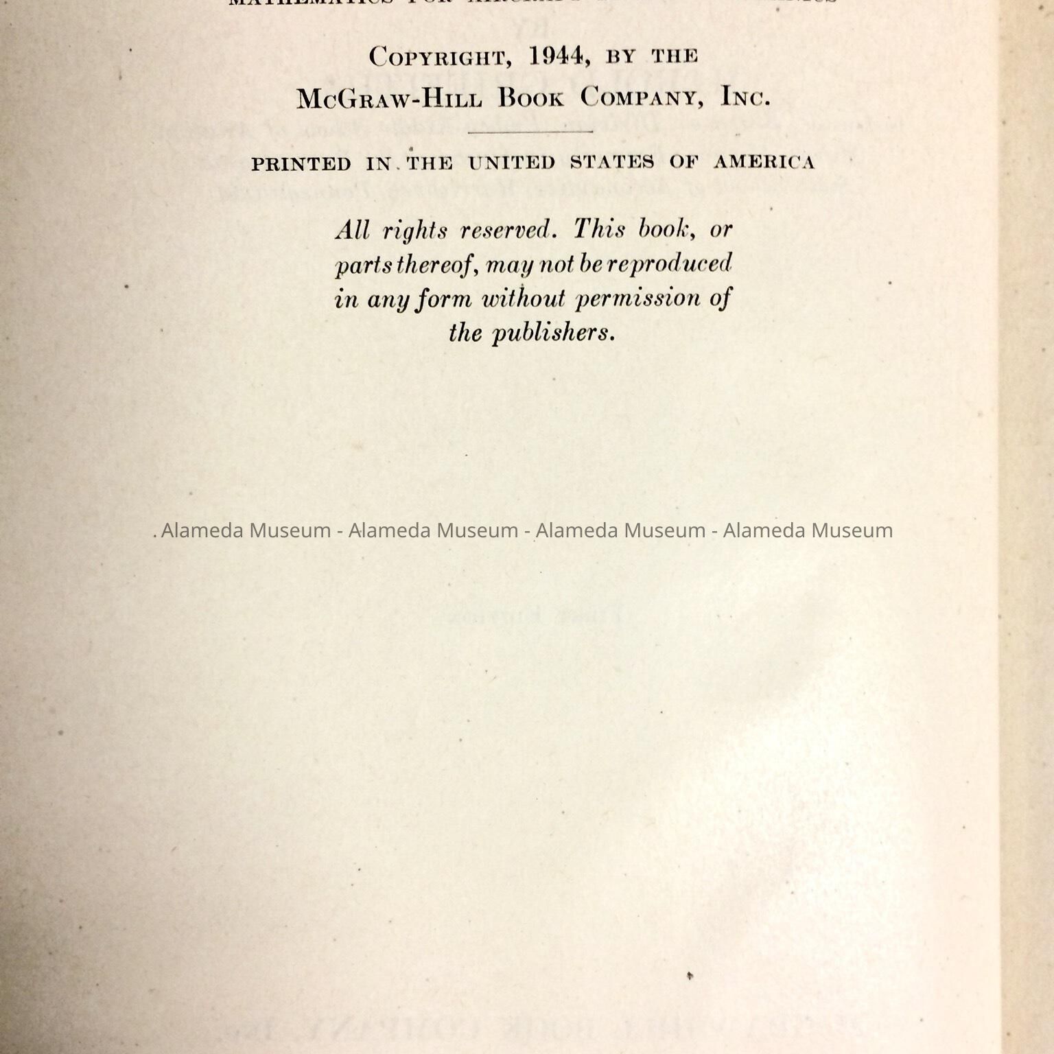 Mathematics for Aircraft Engine Mechanics, by Harold Griffiths, c. 1944Entry/Object ID