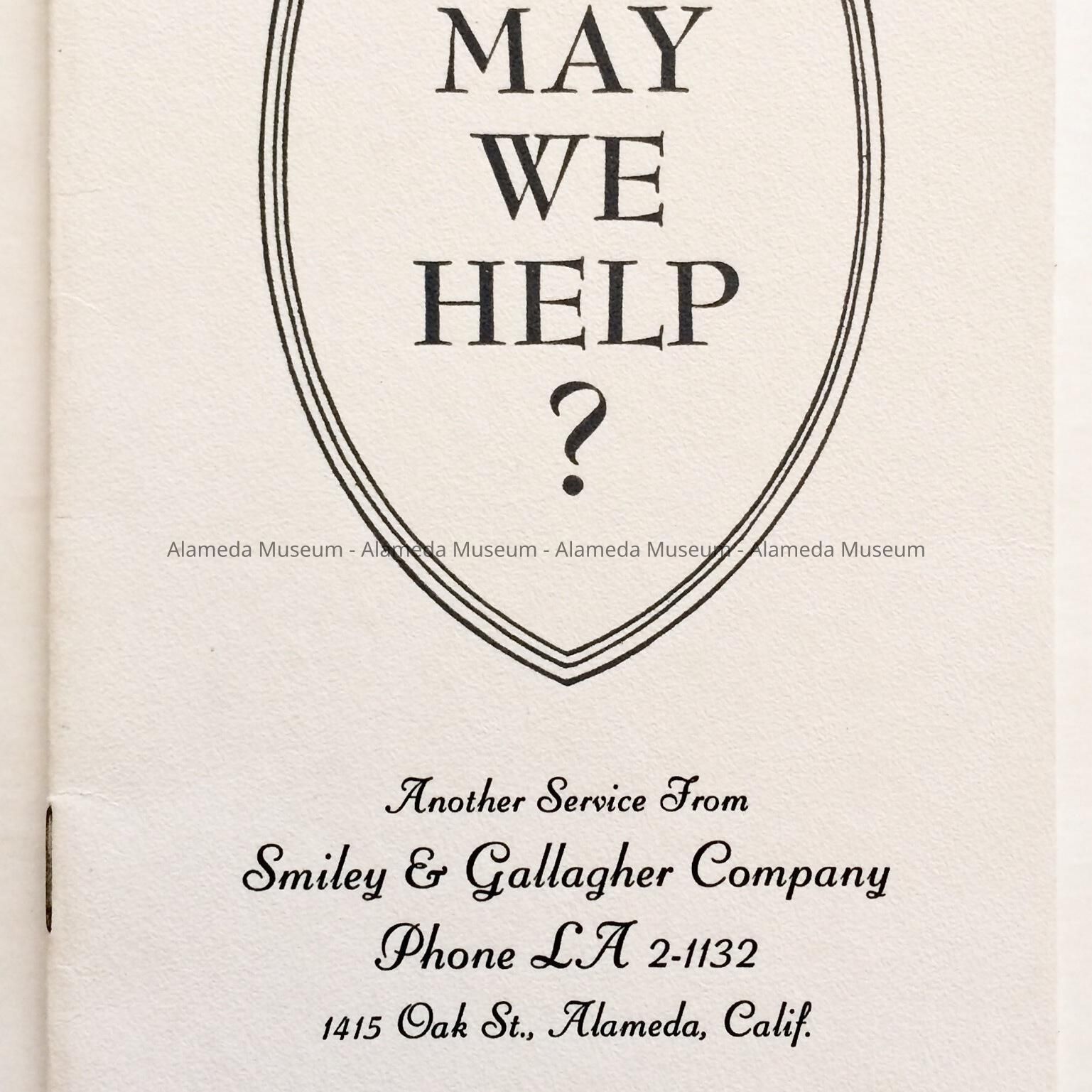 'May we Help?' booklet issued by Smiley & Gallagher Company, c. 1958Entry/Object ID