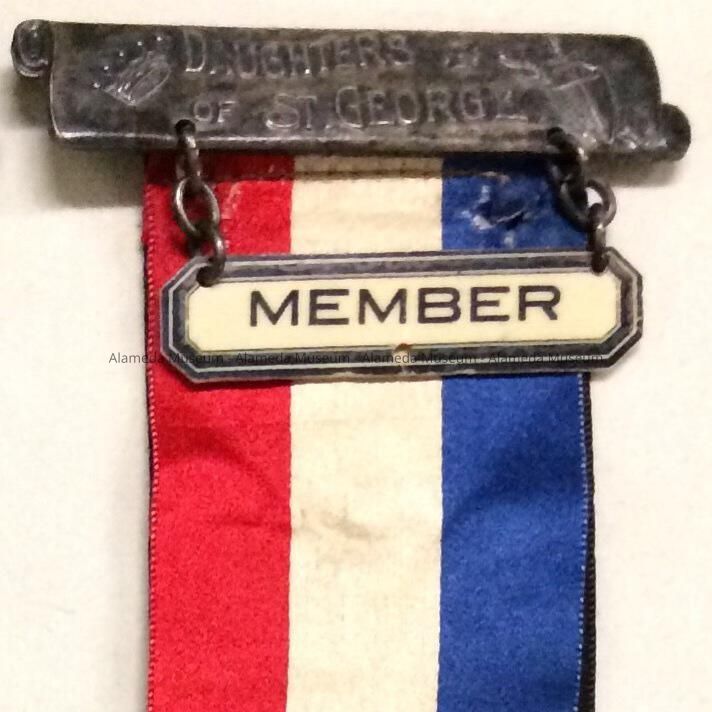History of Object: Member's badge "Daughters of St. George" (a fraternal order of ladies of English extraction). Alameda chapter (Golden Poppy Lodge) founded Dec. 14, 1922, disbanded 1976.
