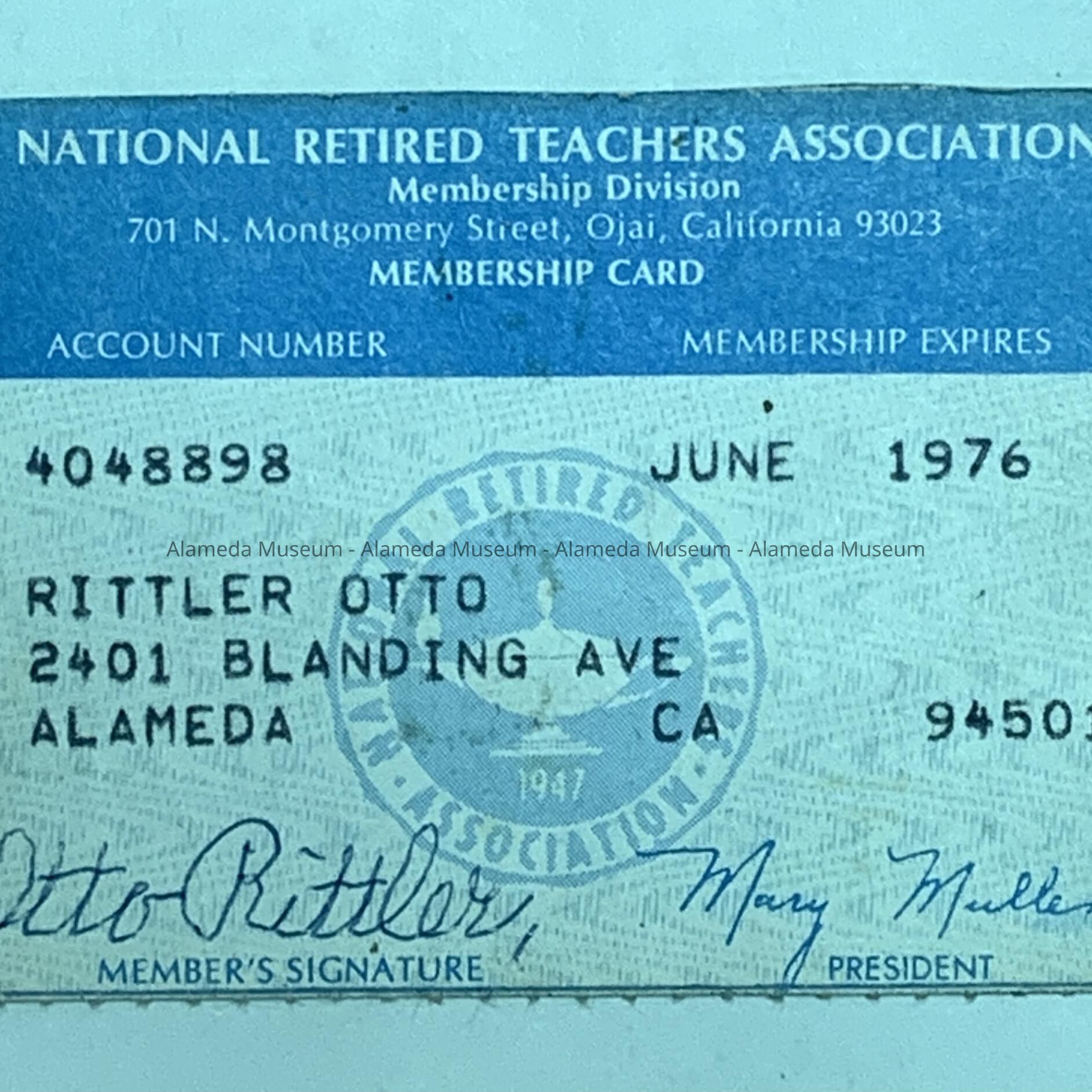 Membership card of the National Retired Teachers' Association of Otto Rittler, 1976Entry/Object ID