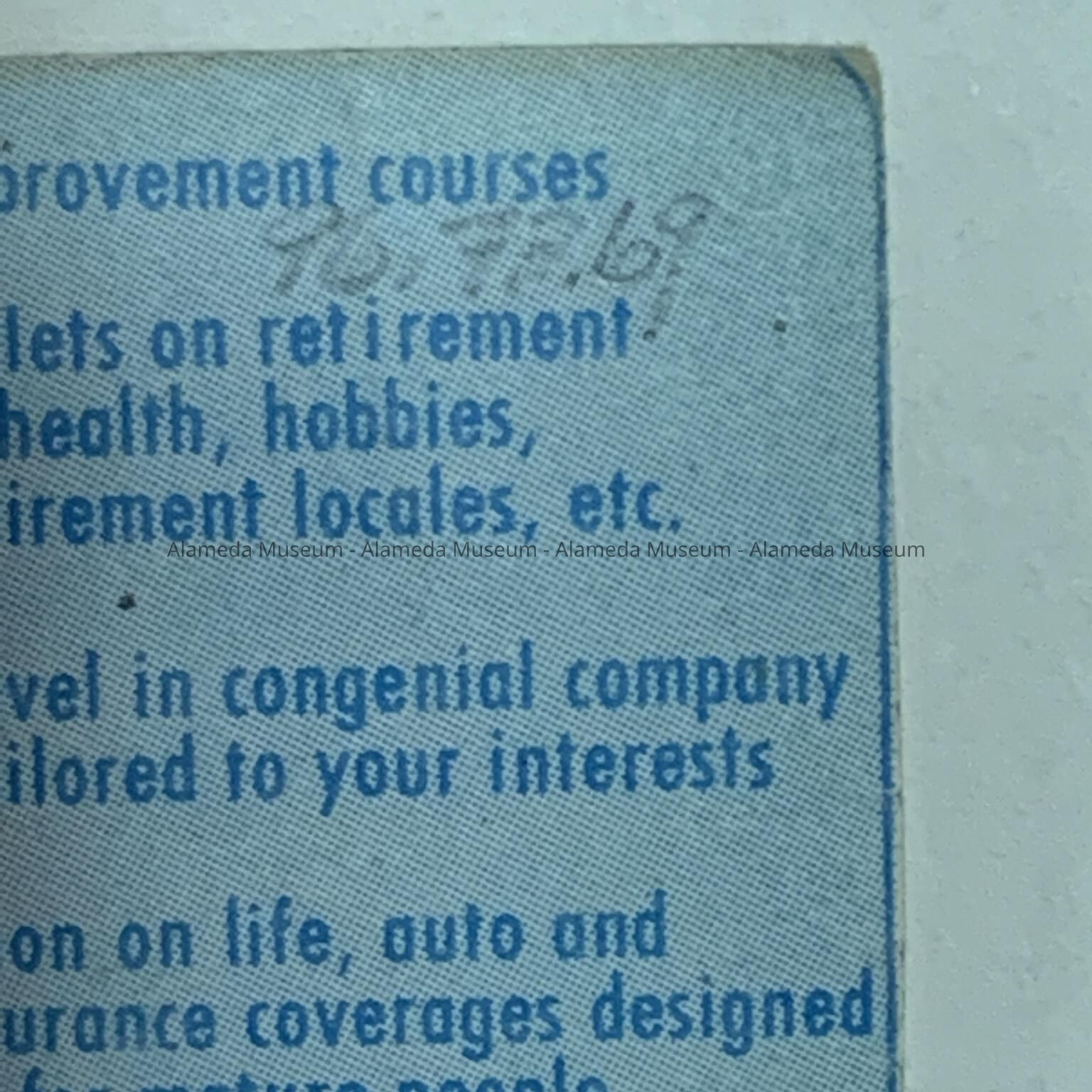 A MEMBERSHIP CARD PRINTED IN BLUE-COLORED TYPE ON A WHITE-COLORED BACKGROUND.