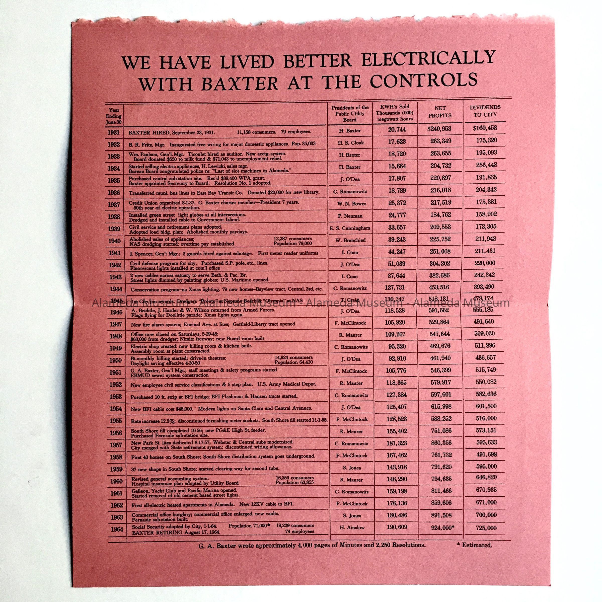 Memorabilia G. A. Baxter, Bureau of Electricity, 1960sEntry/Object ID