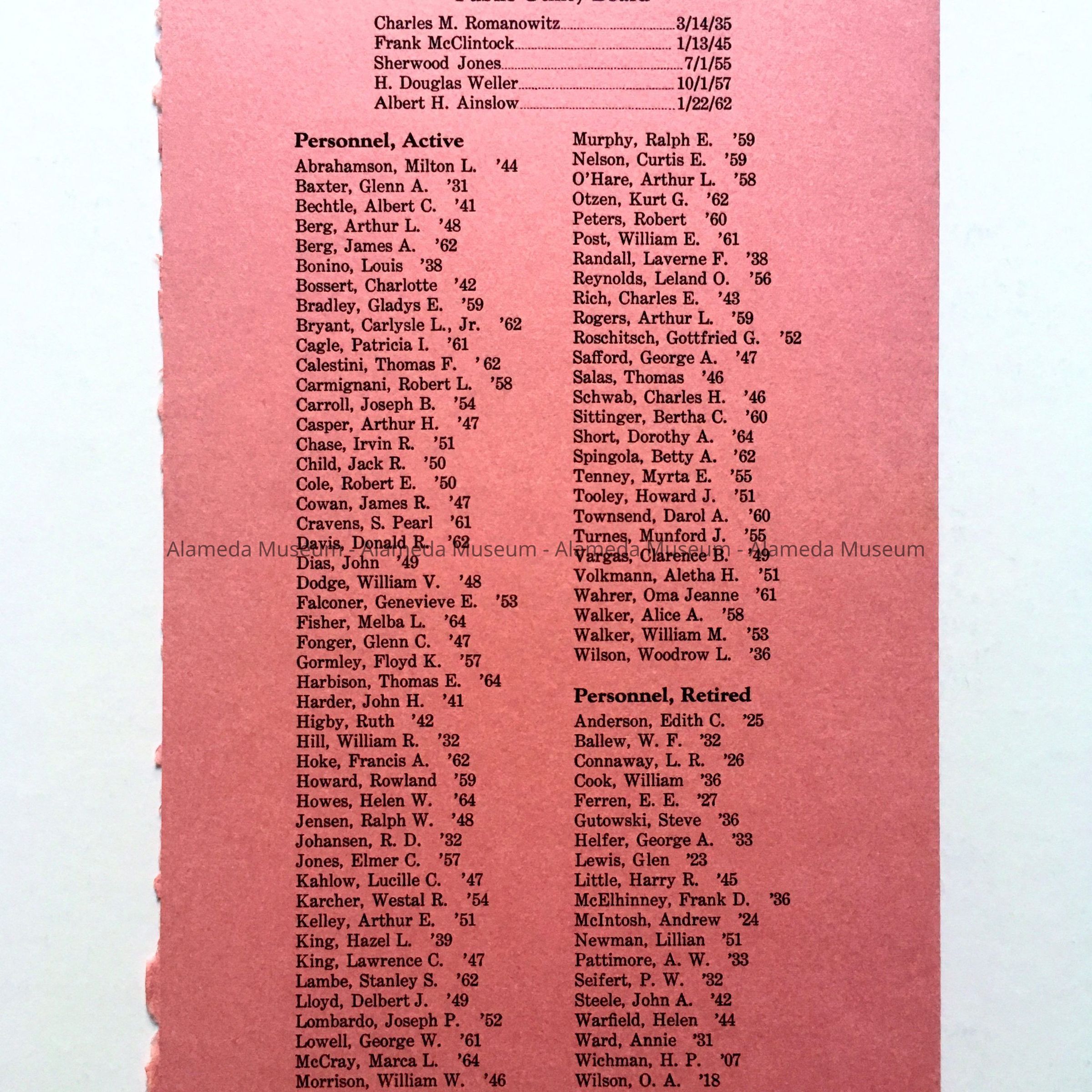 Part of a collection of papers and photographs from an Alameda resident, donated by a sibling.