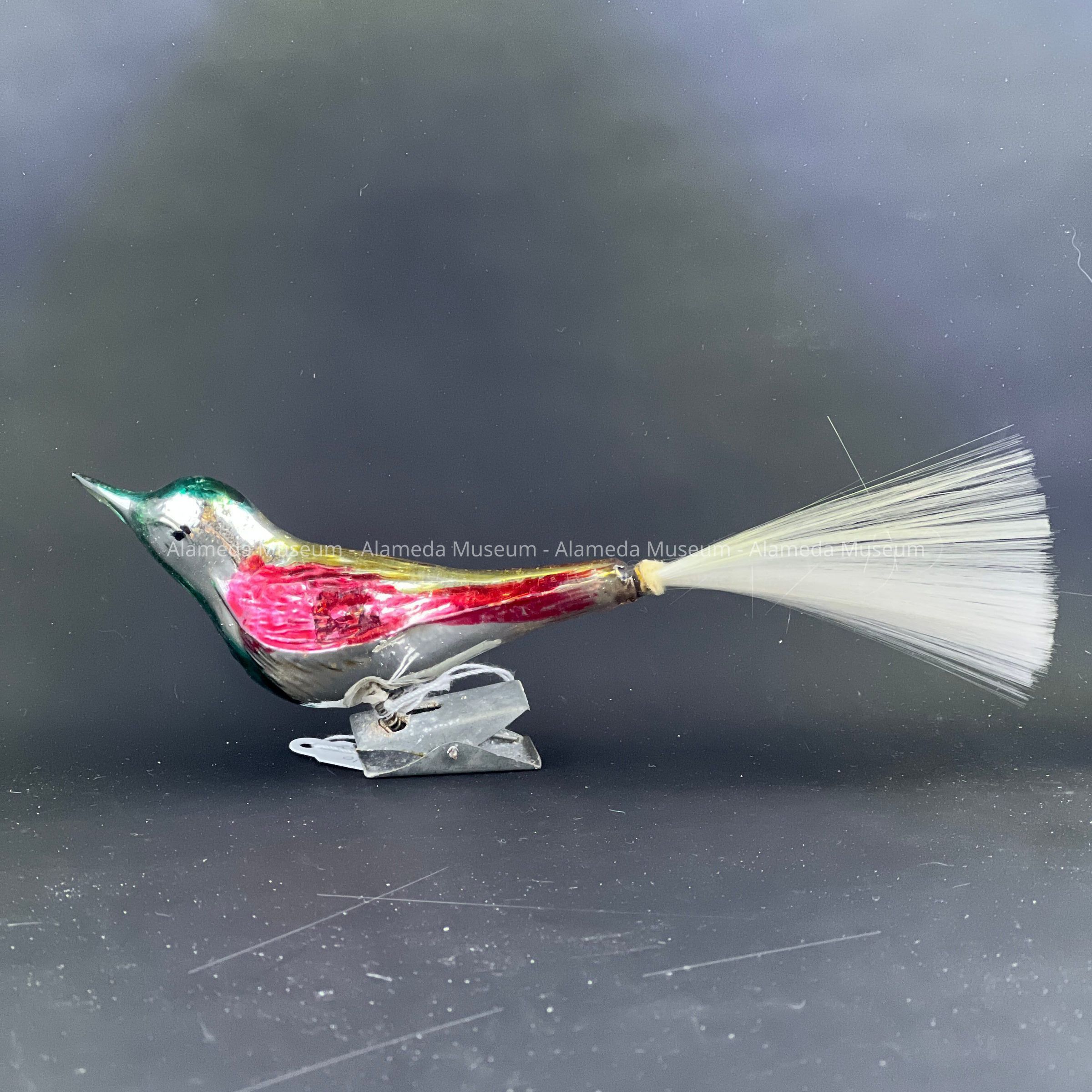 Mercury Glass Bird with Glass Tail and Metal Clamp, c. 1930sEntry/Object ID