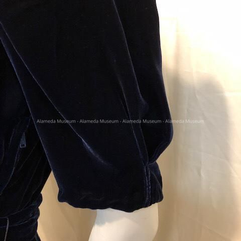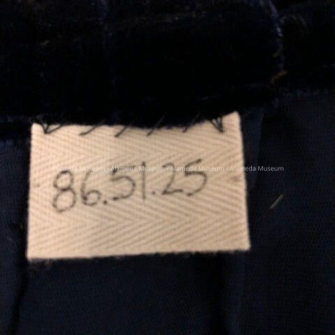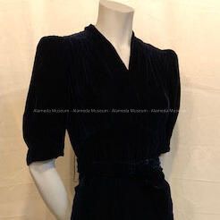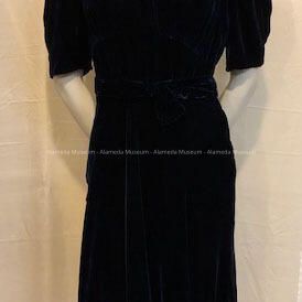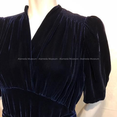 Midnight blue velvet v-neck cocktail dress with belt, 1930sEntry/Object ID