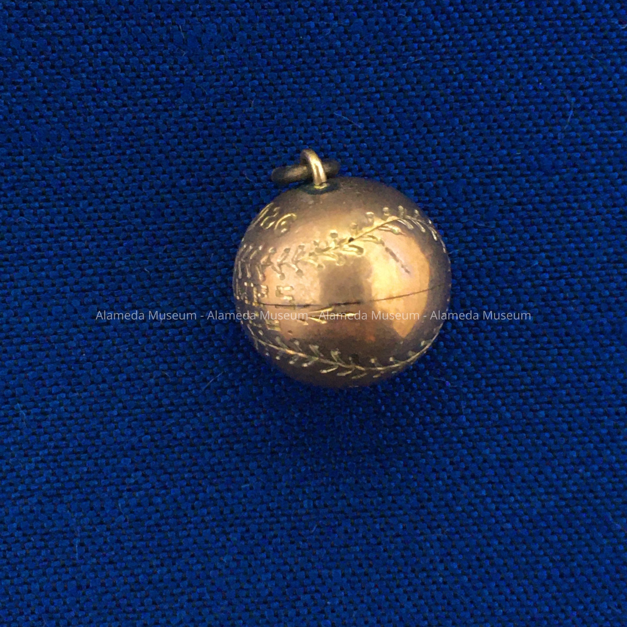 AWARD IN THE FORM OF A GOLD-PLATED MINIATURE BASEBALL ENGRAVED, "CHAMPS S P CO., 1926, H J KIHN." THE BASEBALL IS SUPPORTED BY A METAL LOOP FOR ATTACHING TO A WATCH CHAIN, ETC.