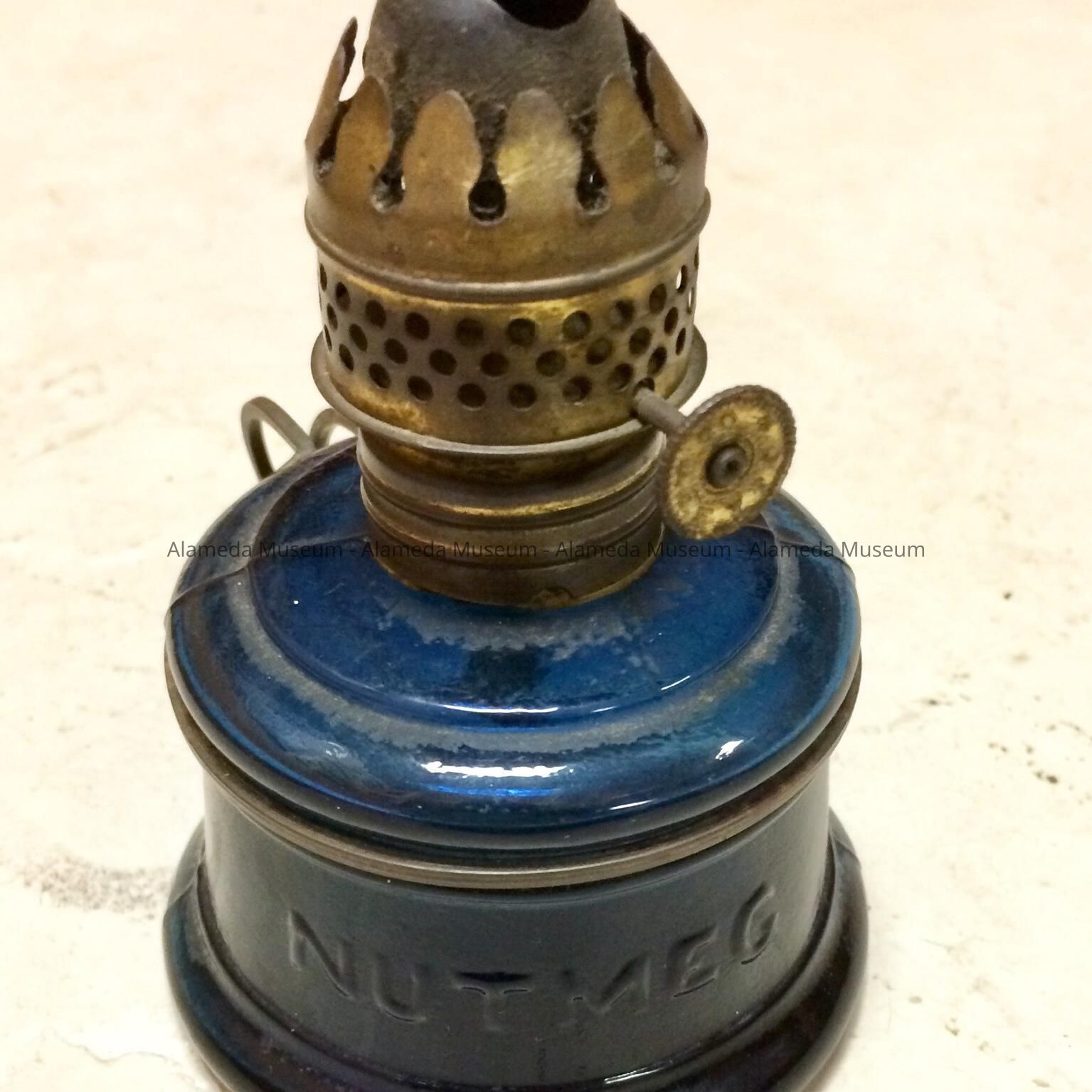 Miniature cobalt blue 'Nutmeg' kerosene lamp of the Krueger familyEntry/Object ID