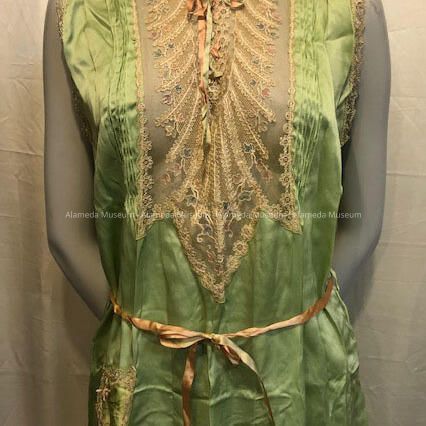 Mint-green satin nightgown from the attic of 2153-2155 Central, c. 1920sEntry/Object ID