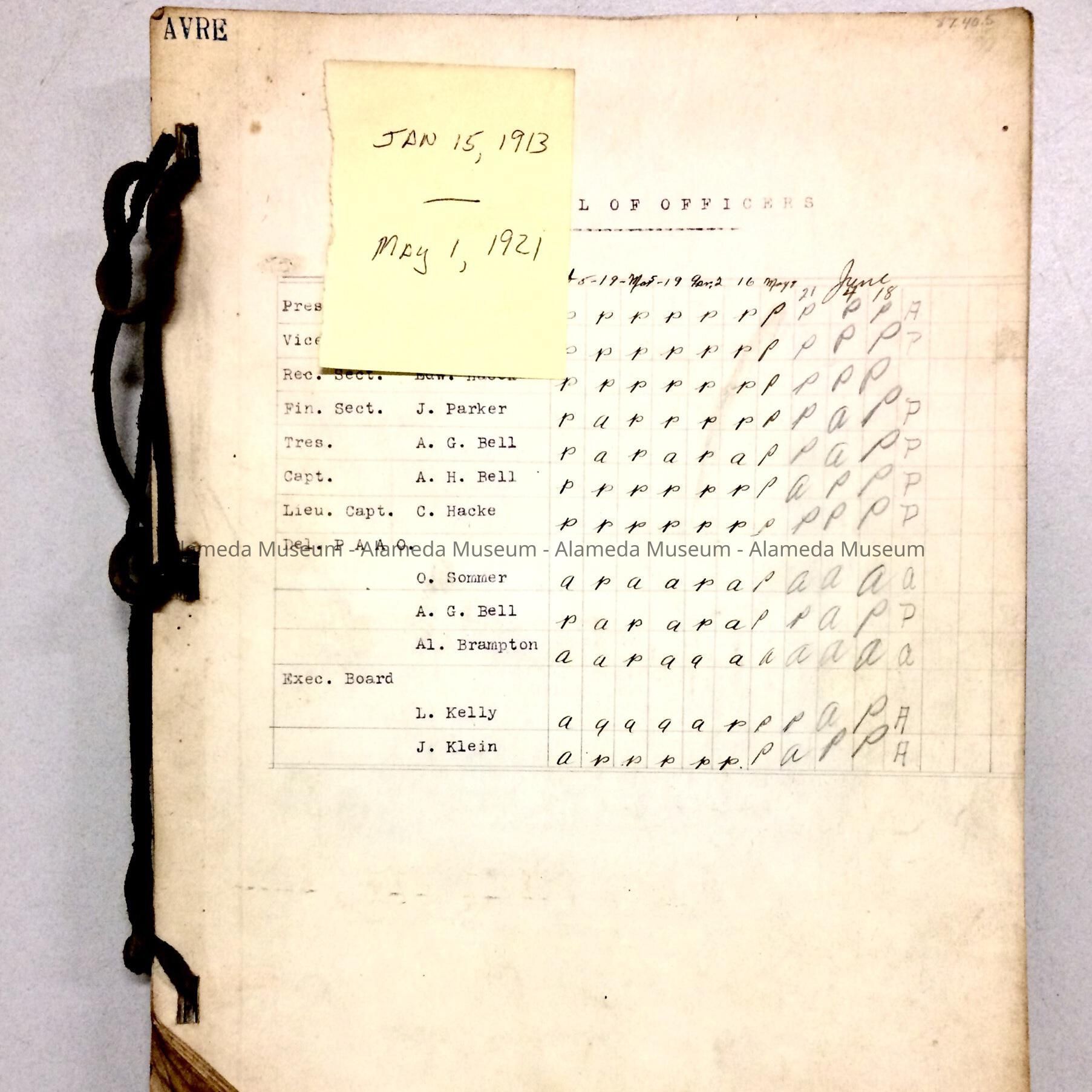Minutes Alameda Boating Club, 1913-1921Entry/Object ID