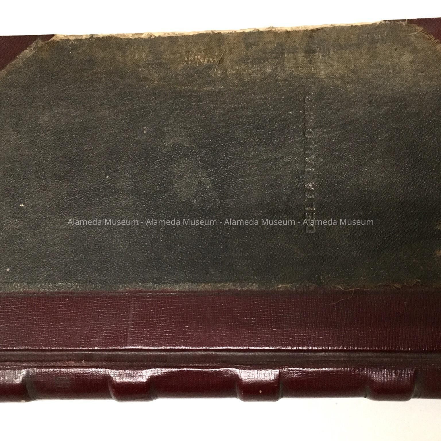 Minutes of the Alameda High School Sorority Delta Tau Omega. In 1950's Alameda High School requested they call themselves a club and assume another name. The name selected was “Delthenian Club”. Back portion of ledger contained a role sheet giving membership and attendance.