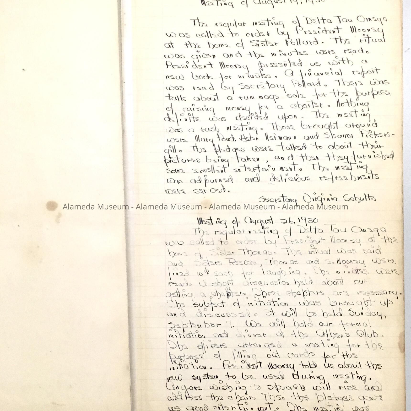 Minutes Book of Alameda High School Sorority Delta Tau Omega, 1930-1938Entry/Object ID