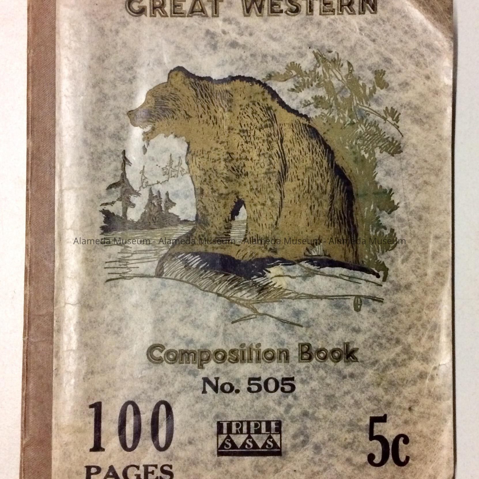 SOFT-COVER COMPOSITION BOOK. COVER DESIGN FEATURES A BEAR IN GOLD- AND BLACK-COLORED TYPE, WITH CAPTION, "GREAT WESTERN." HANDWRITTEN MINUTES ARE CONTAINED WITHIN THE BOOK.