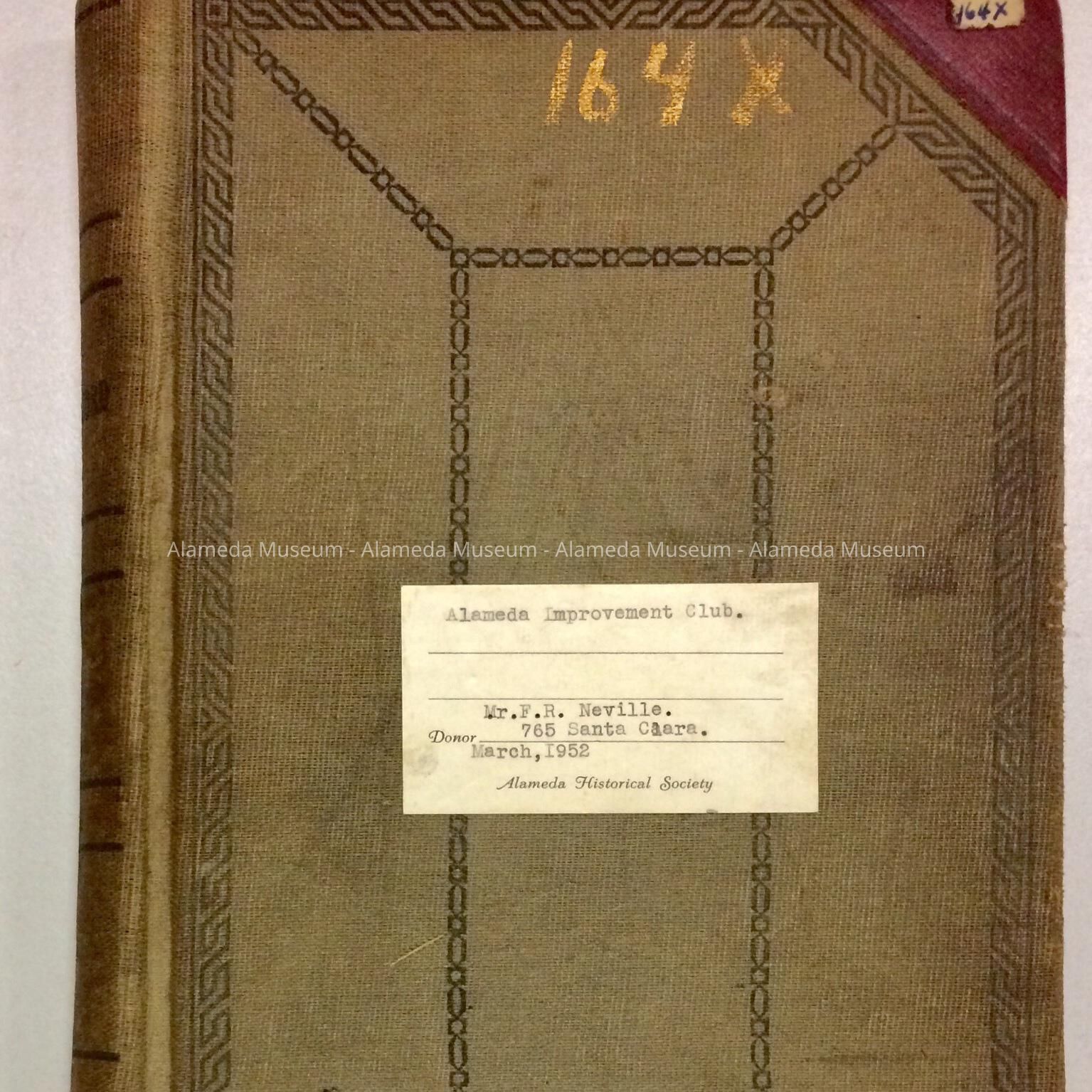 MINUTES OF THE ALAMEDA IMPROVEMENT CLUB FROM JANUARY 12, 1922 THRU NOVEMBER 27, 1930. THE MINUTES WERE GIVEN TO THE ALAMEDA HISTORICAL SOCIETY IN MARCH OF 1952, NUMBERED "164-X," BUT HERETOFORE NOT CATALOGED.