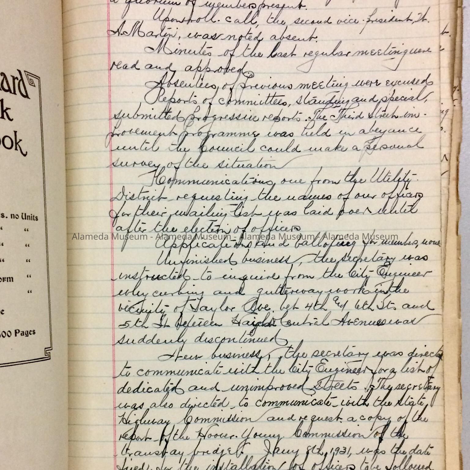 Minutes of the Alameda Improvement Club, 1930-1946Entry/Object ID