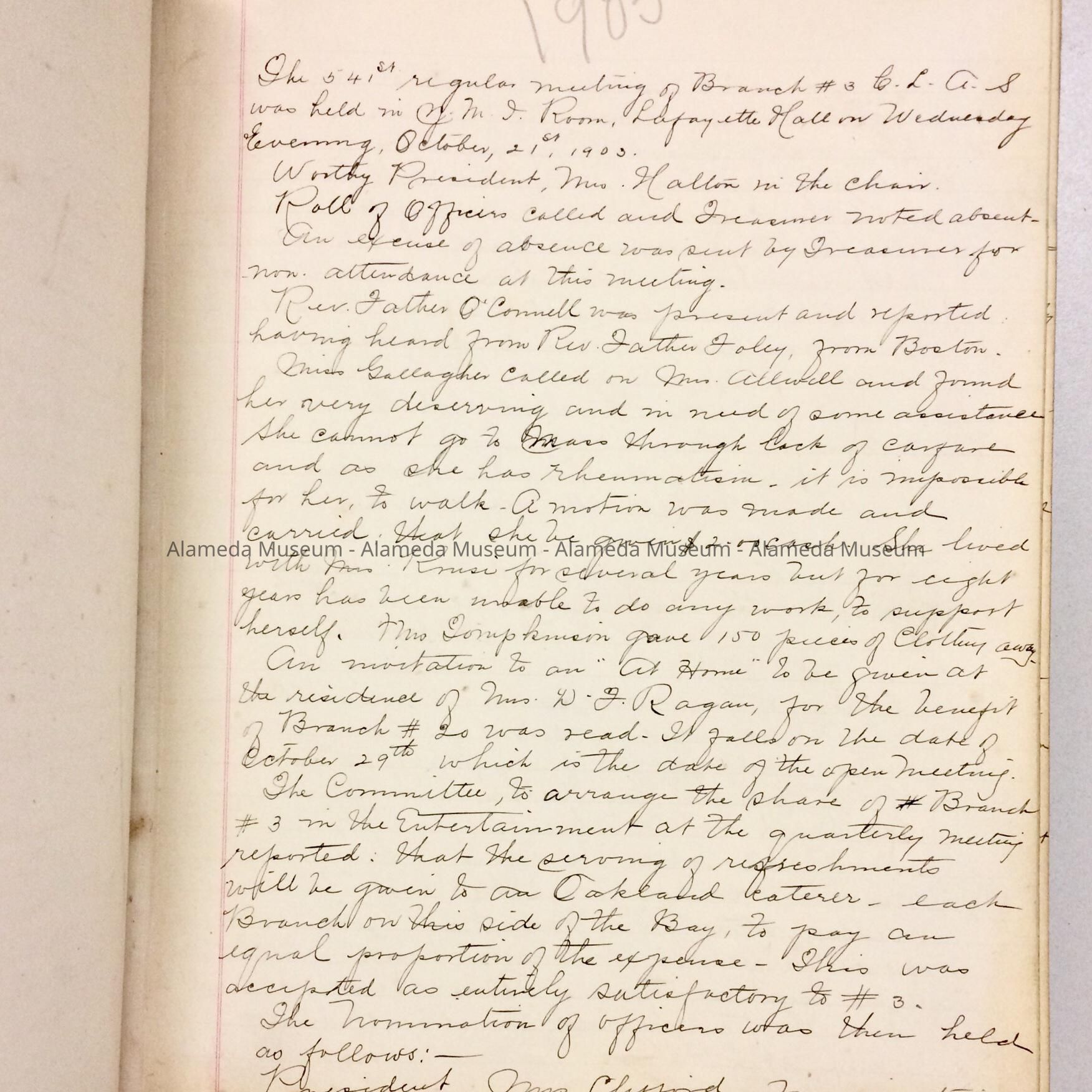 Minutes of the Catholic Ladies' Aid Society Branch No. 3, 1903-1908Entry/Object ID