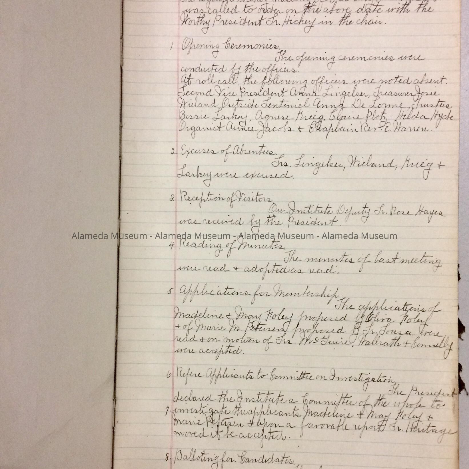 MINUTES OF THE YOUNG LADIES' INSTITUTE (A CATHOLIC ORGANIZATION), 1918-1919.