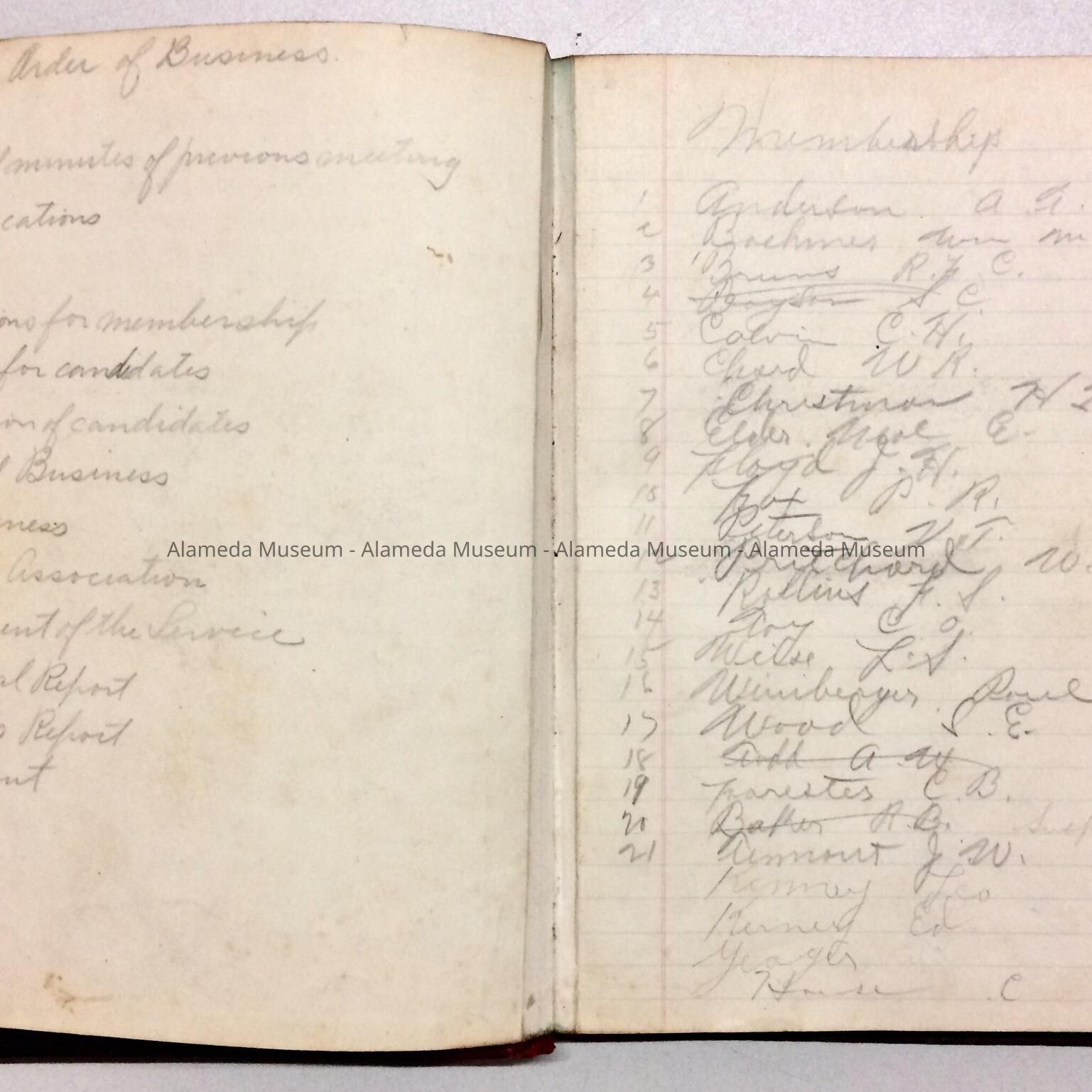 MINUTES OF THE NATIONAL ASSOCIATION OF LETTER CARRIERS, ALAMEDA BRANCH, FROM JANUARY 7, 1916 TO NOVEMBER 15, 1927. THE MINUTES ALSO INCLUDE A LIST OF MEMBERSHIP AND ATTENDANCE RECORDS.