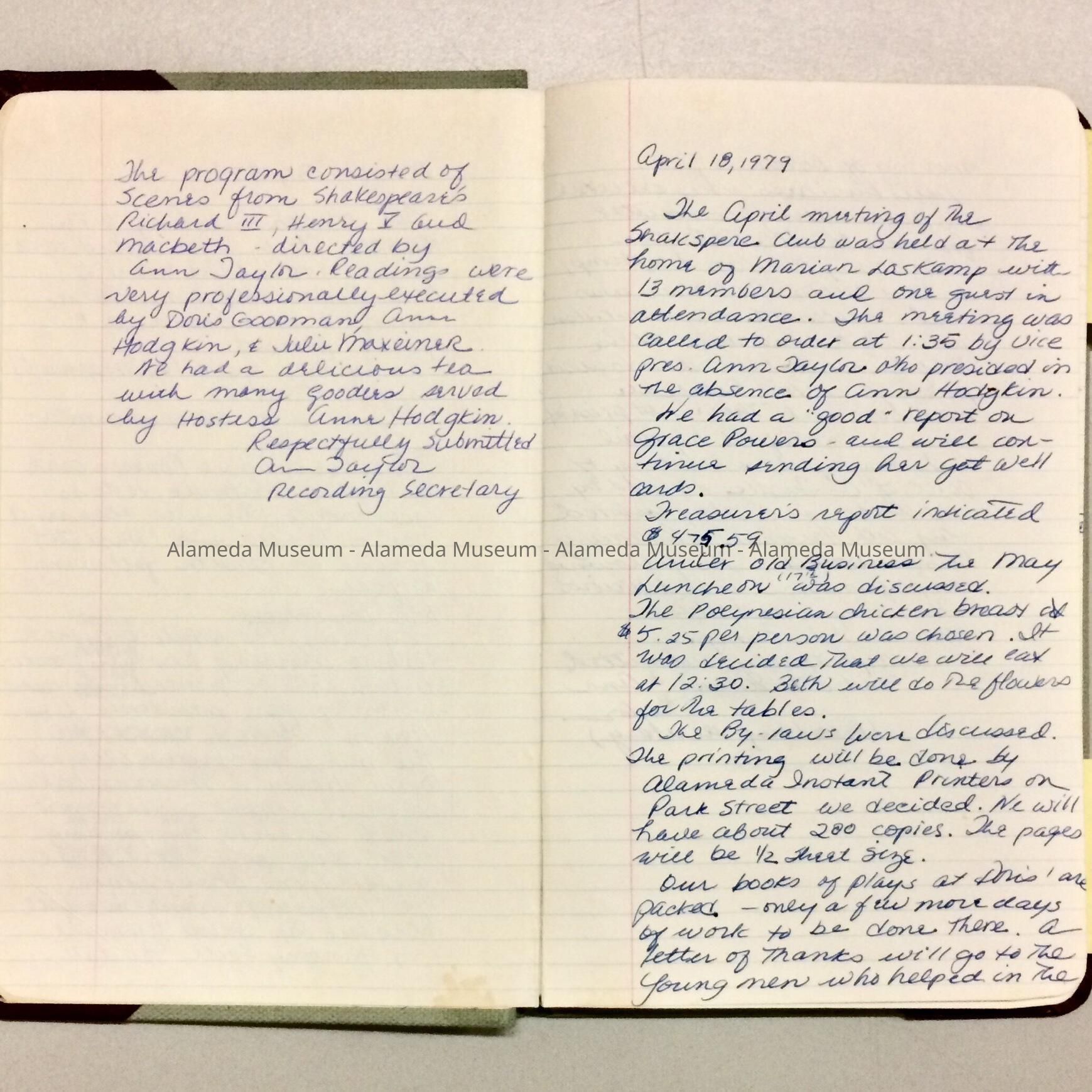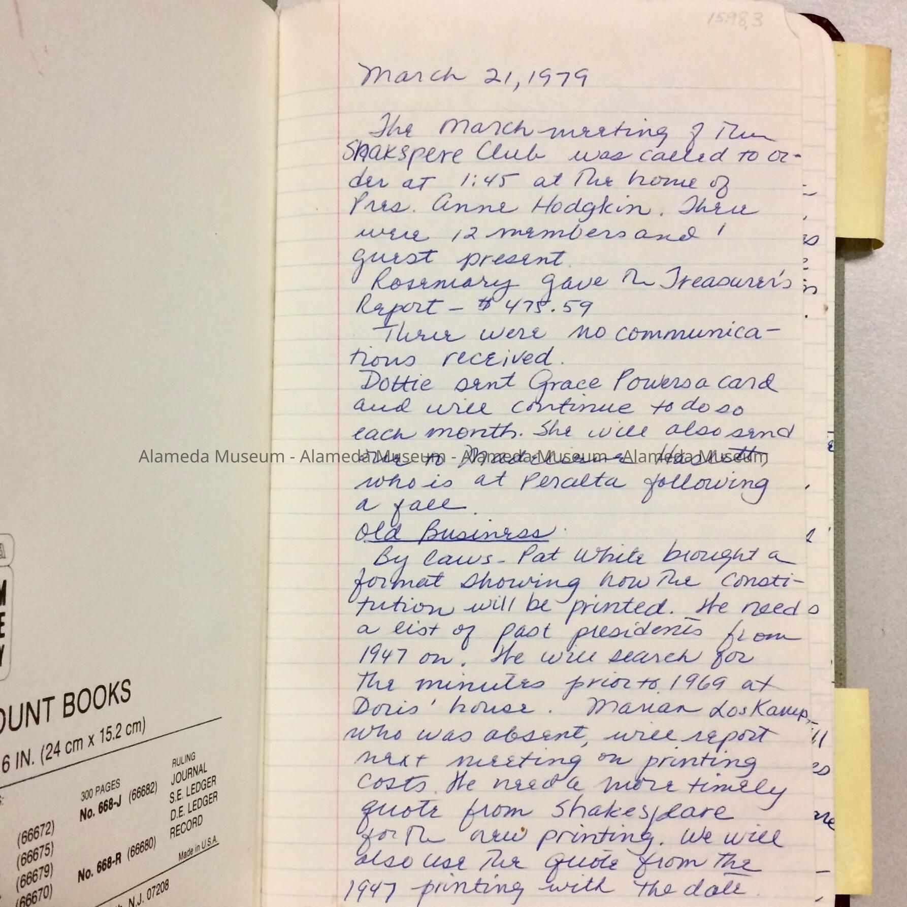 HISTORY OF OBJECT: MINUTES OF THE SHAKSPERE CLUB, FROM MARCH 21, 1979 TO JUNE 15, 1988.