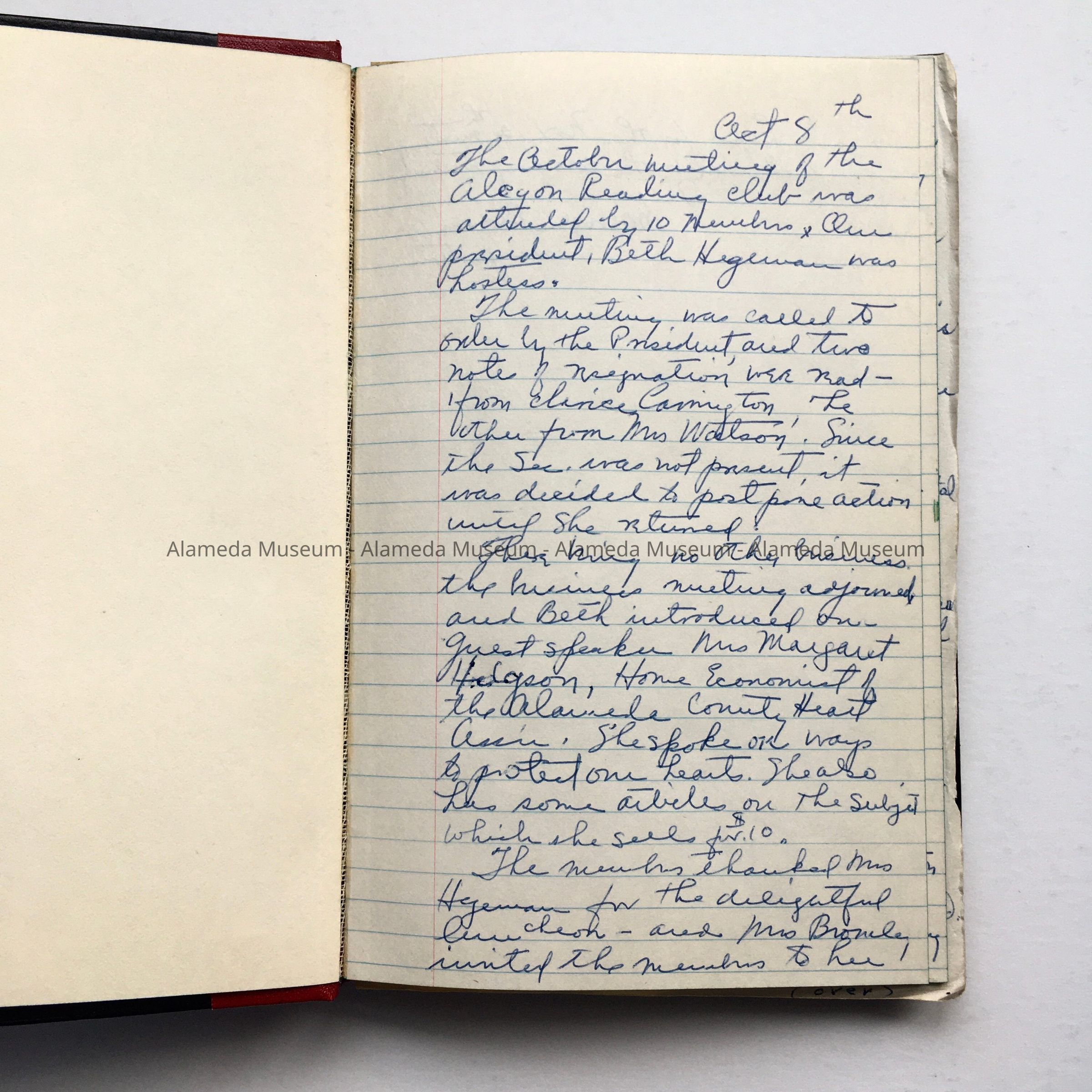 Minutes 'Record' of the Alcyon Reading Club, 1955-1956Entry/Object ID