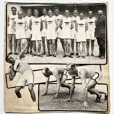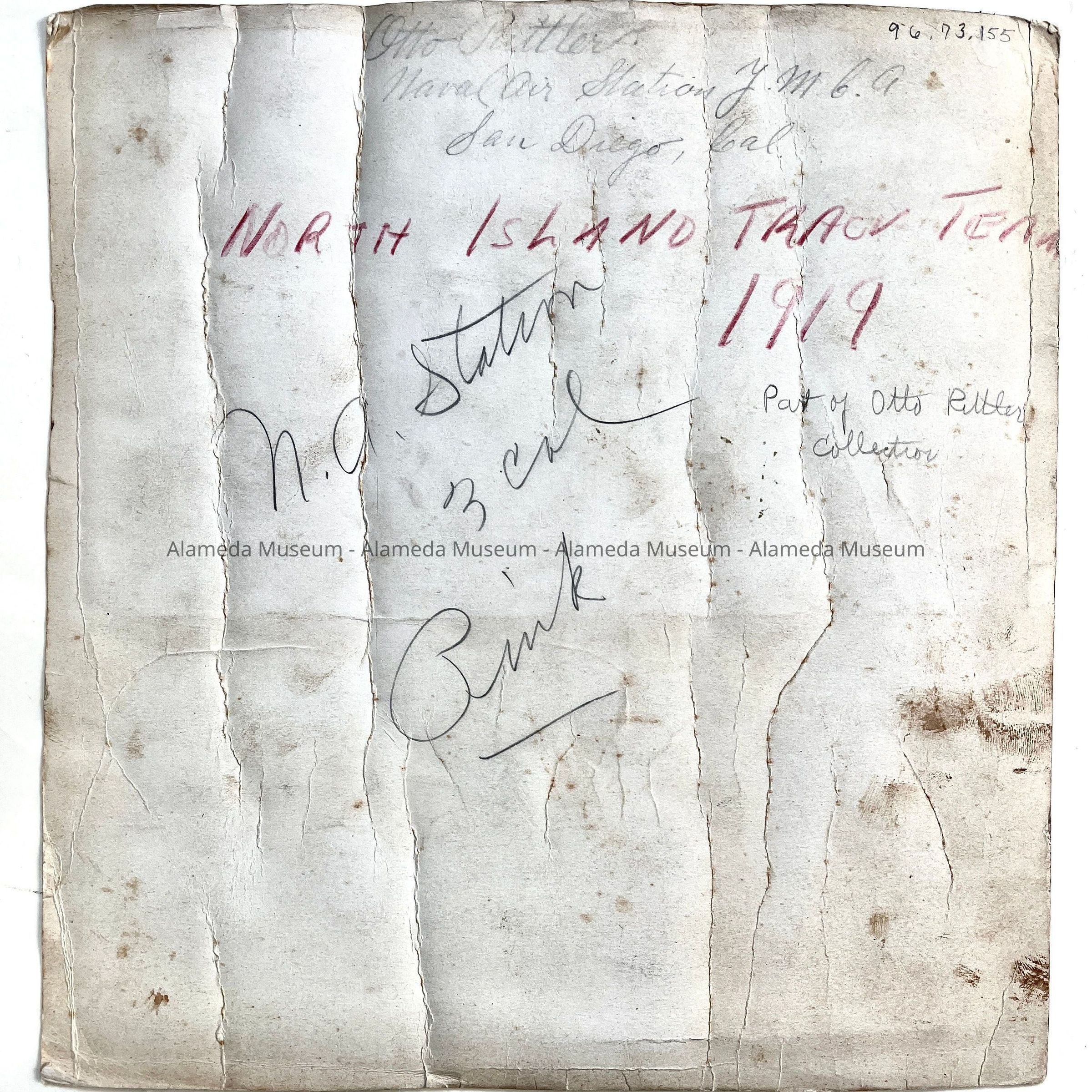 - a photo stating 'Training Track Team San Diego Naval Air Station 1917-1918, stamped June 10, 1919