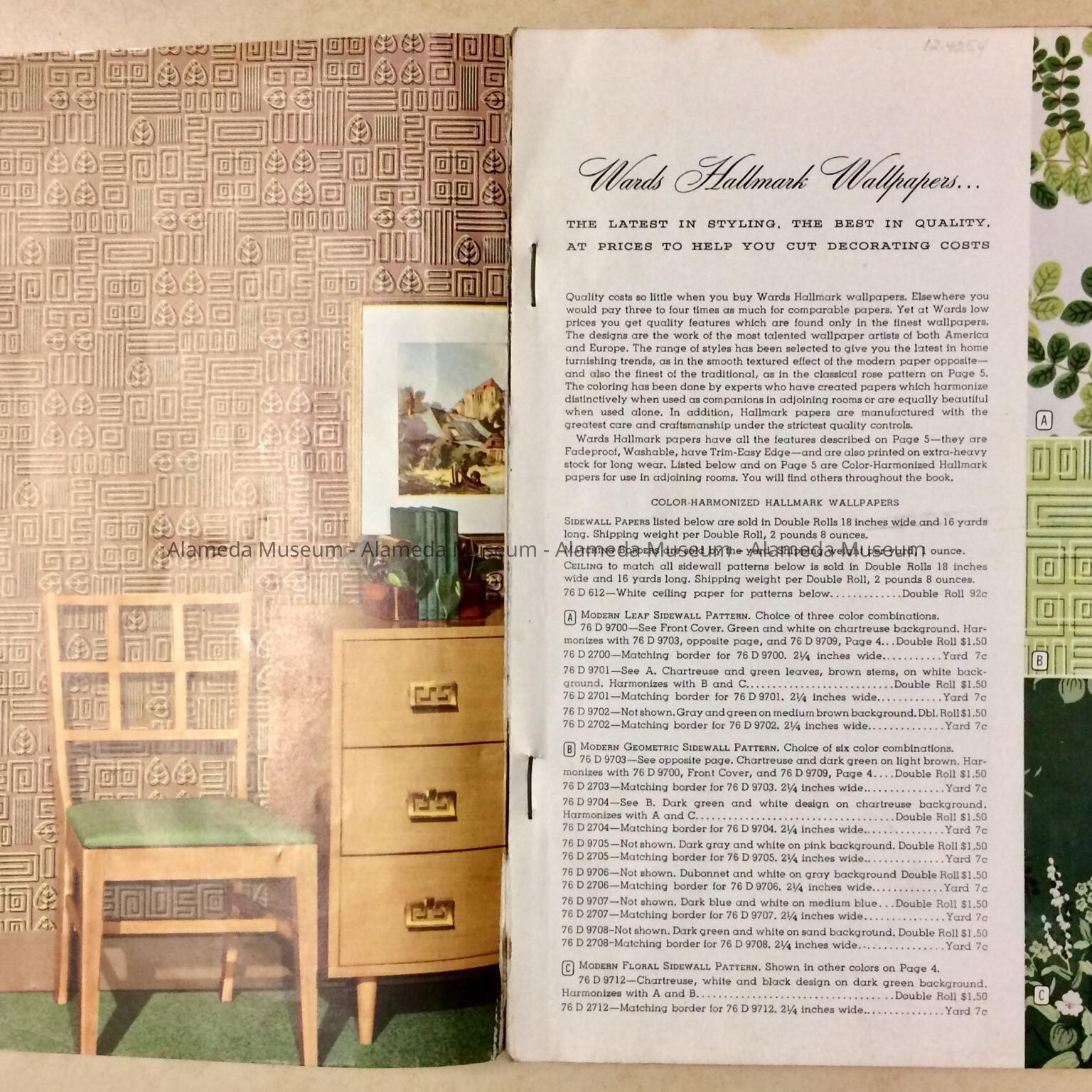 Montgomery-Ward walpaper catalog, c. 1954Entry/Object ID