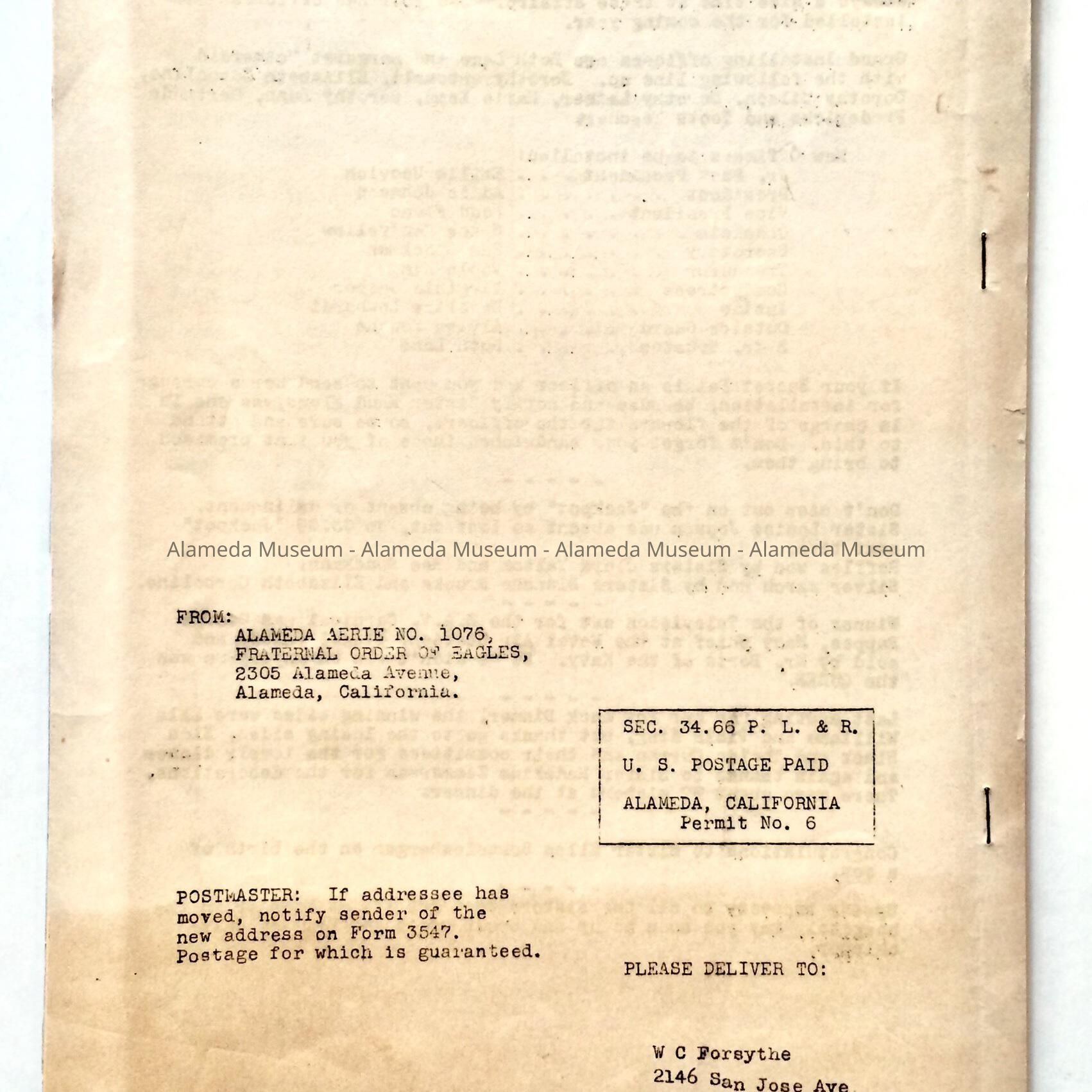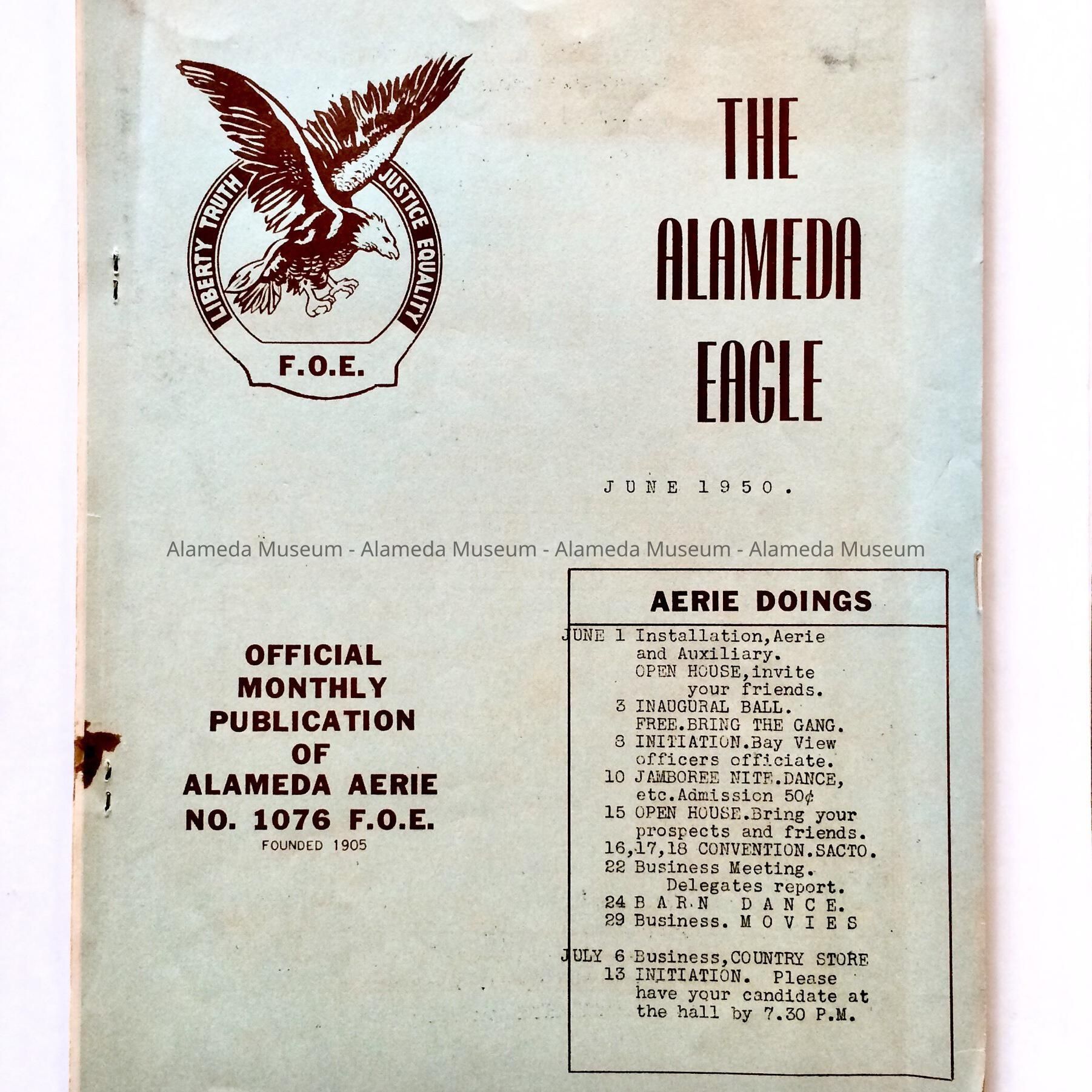 History of Object: Official monthly publication of the Alameda Aerie, No. 1076, Fraternal Order of Eagles, founded 1905.