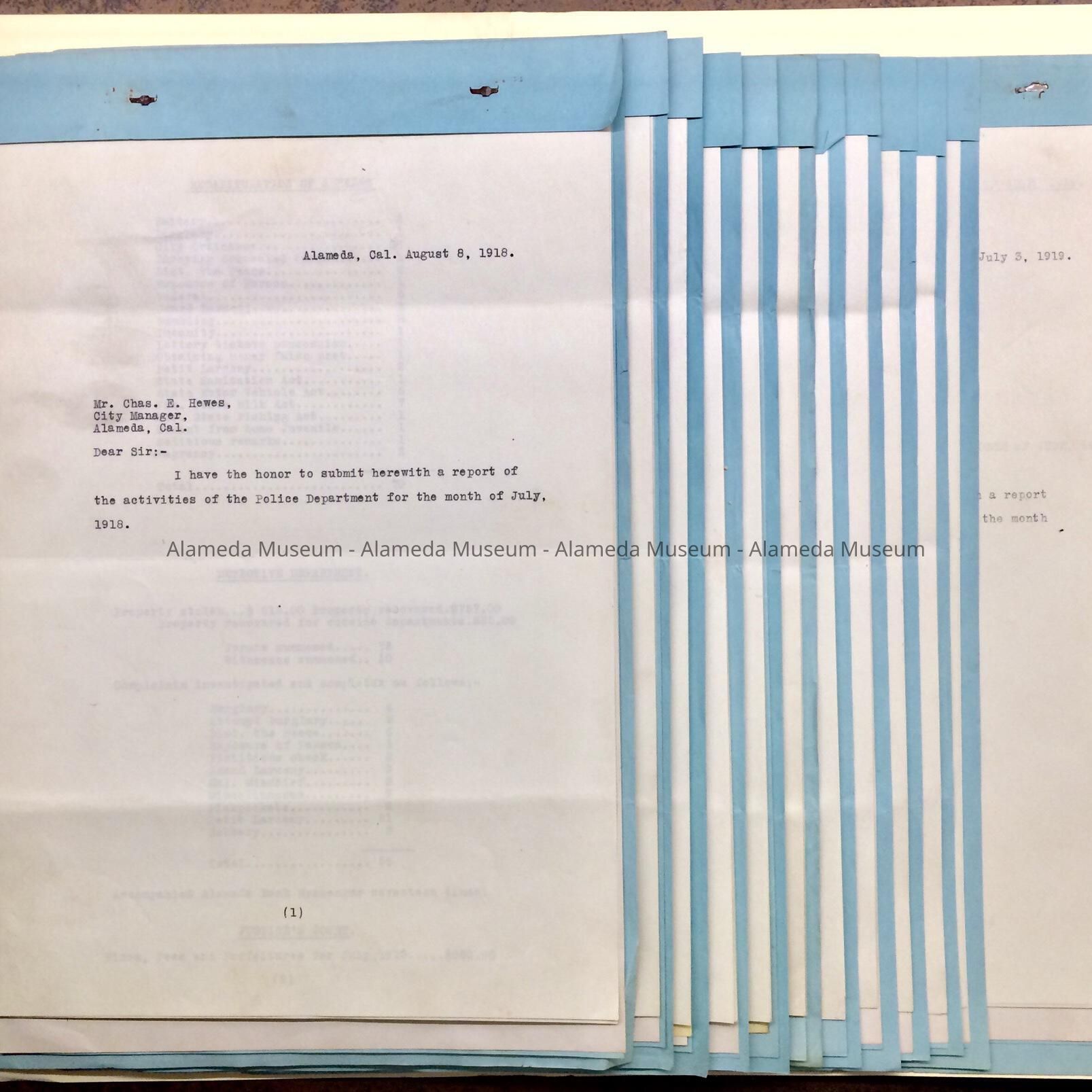 Monthly Police Reports from July 1918 to June 1919.