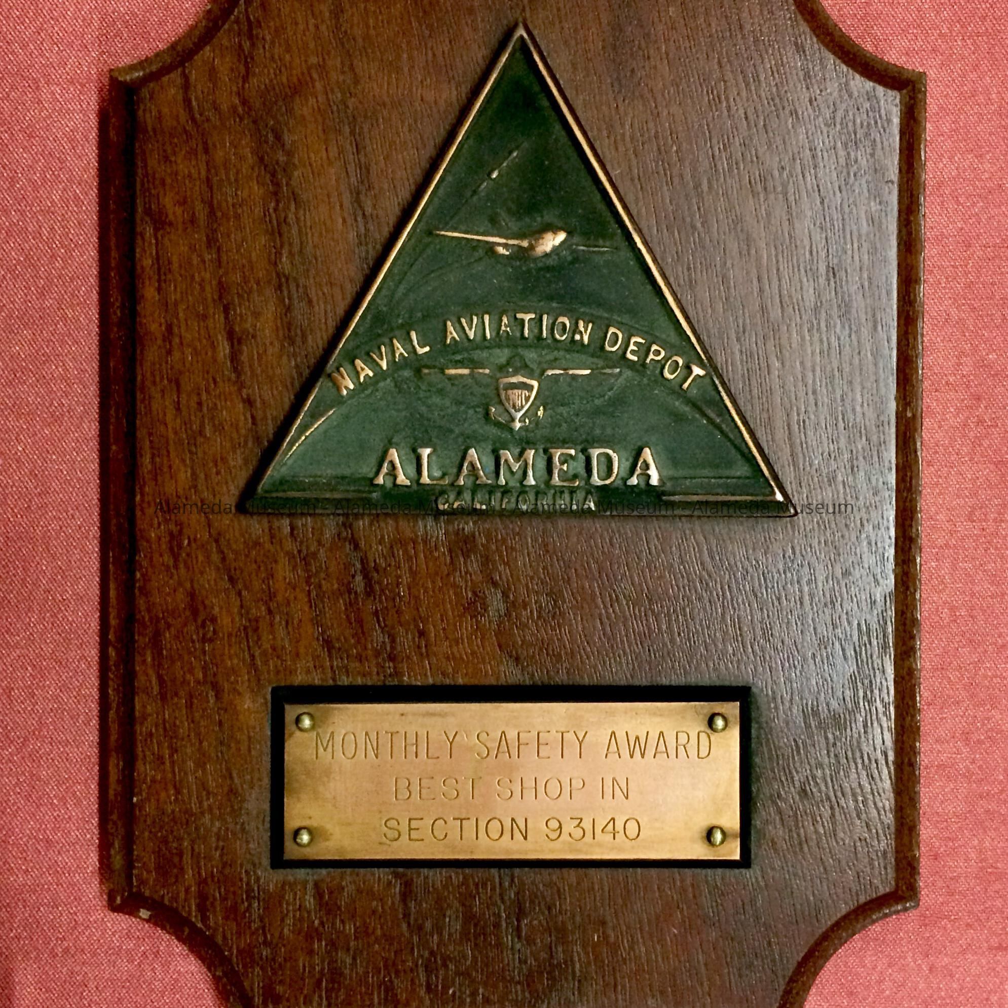 A MONTHLY SAFETY AWARD FOR THE BEST SHOP IN SECTION NO. 93140, NAVAL AVIATION DEPOT, ALAMEDA.