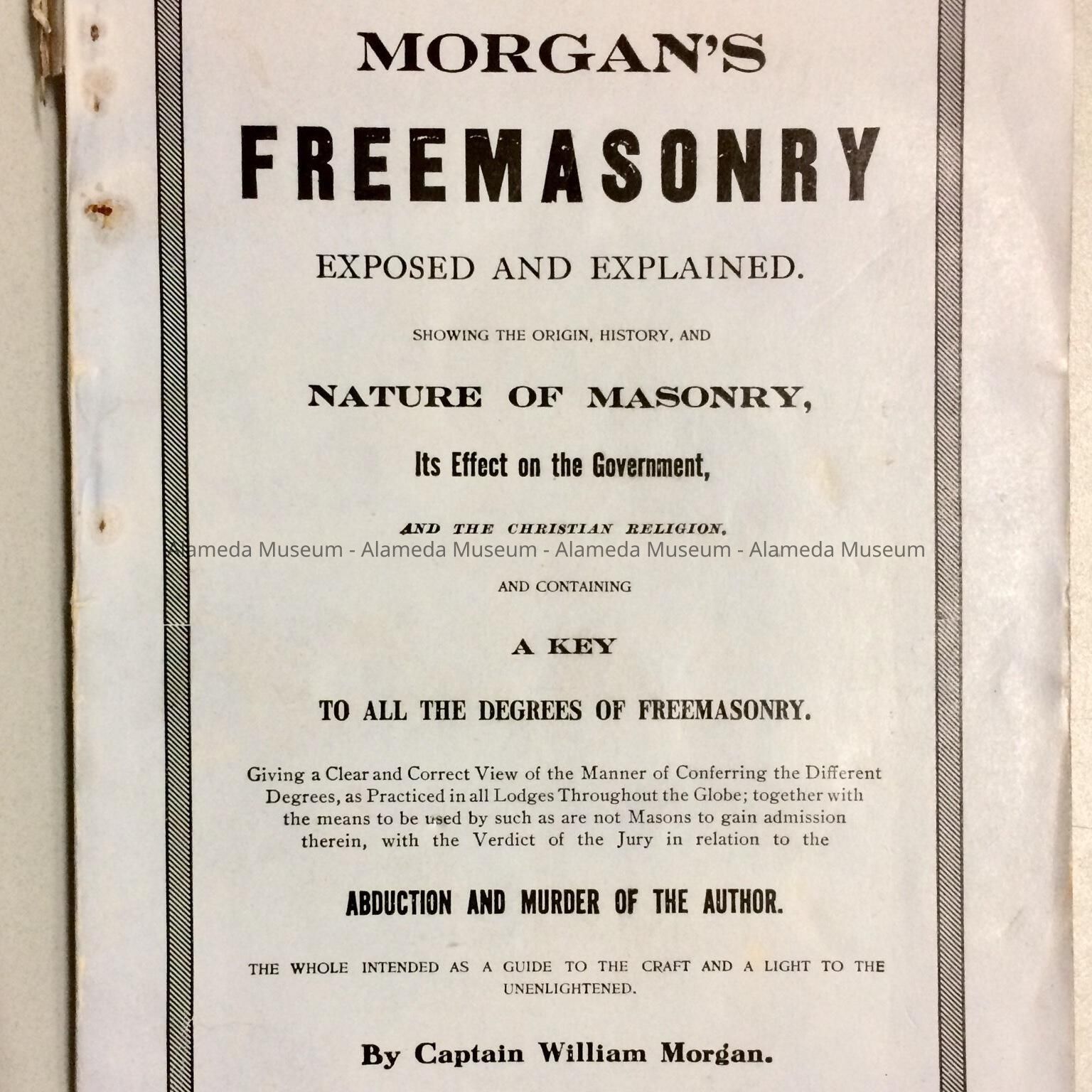 BOOKLET ENTITLED, "MORGAN'S FREEMASONRY," THAT WAS PLACED IN THE CORNERSTONE OF ALAMEDA HIGH SCHOOL IN 1902.