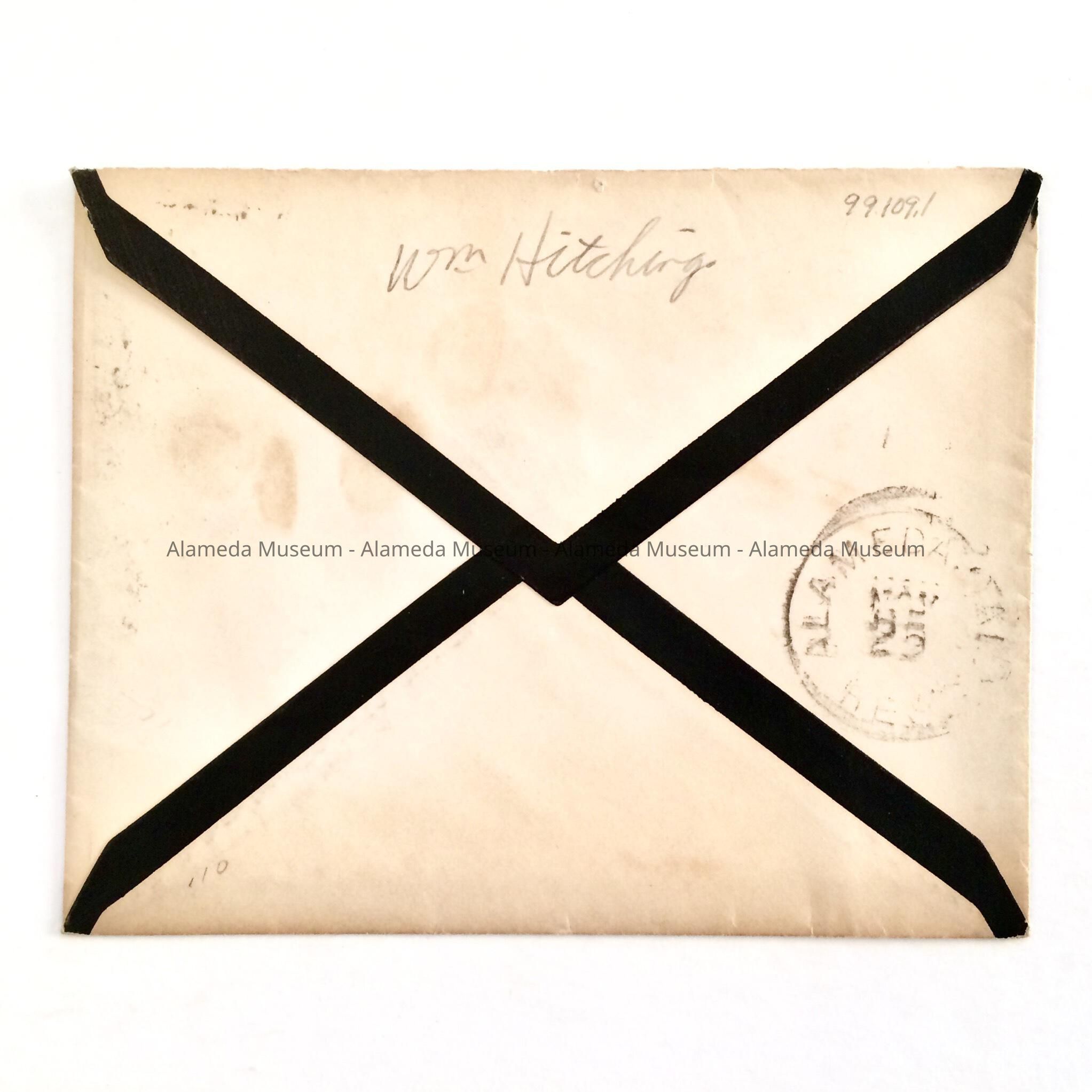 History: Mourning envelope addressed to Mrs. Alfred A. Cohen, Fernside, Alameda, CA.