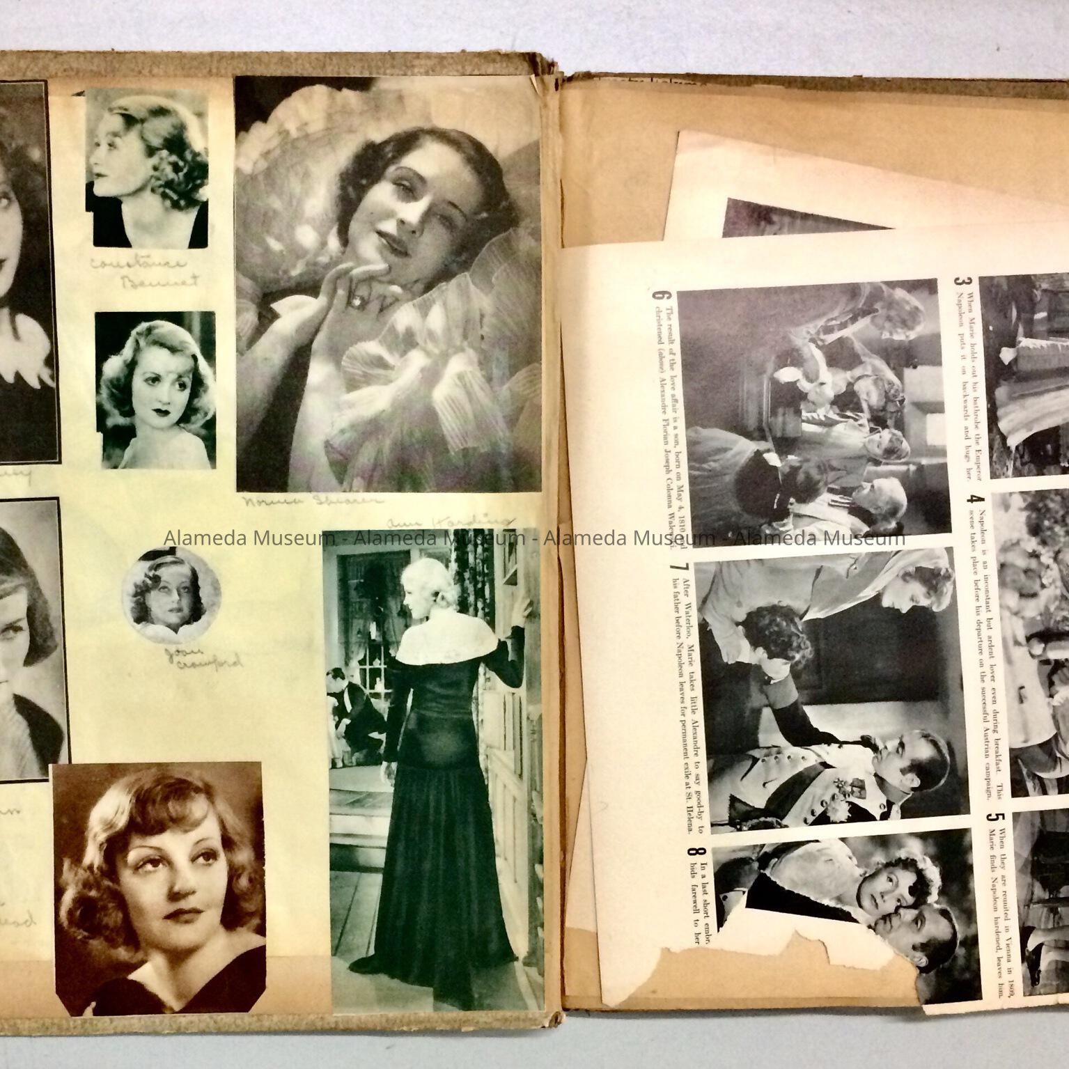 History of Object: Scrapbook compiled by the donor as a young girl of pictures of her favorite movie stars (Greta Garbo, Marlene Dietrich, etc.). The Baker family lived on Hibbard Street.